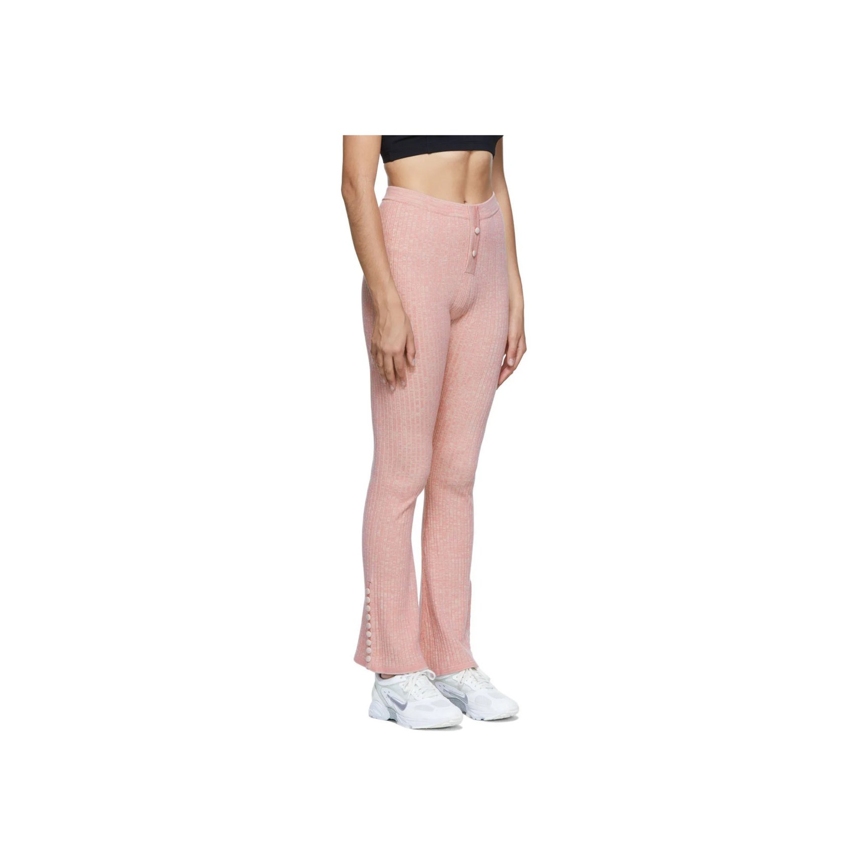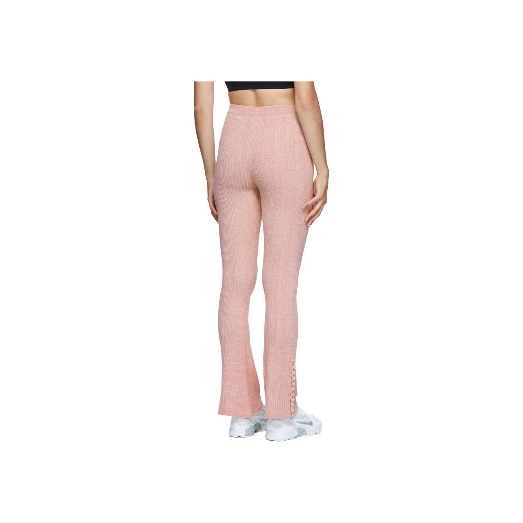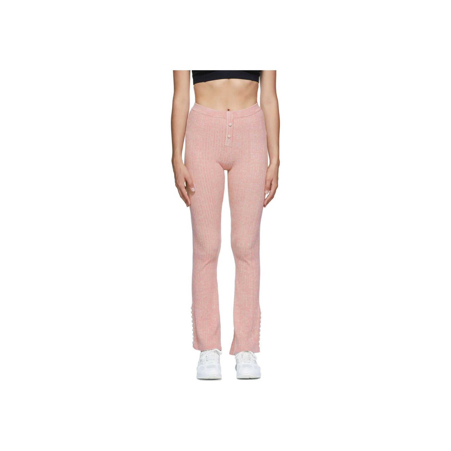 ウェルネスを追求したエシカルファッションの「ライブ ザ プロセス(Live The Process)」。こちらのパステルピンクのリブパンツは、機能性にもこだわった素材で快適な履き心地。フロントと裾には、丸みがかわいいスナップボタンがあしらわれています。