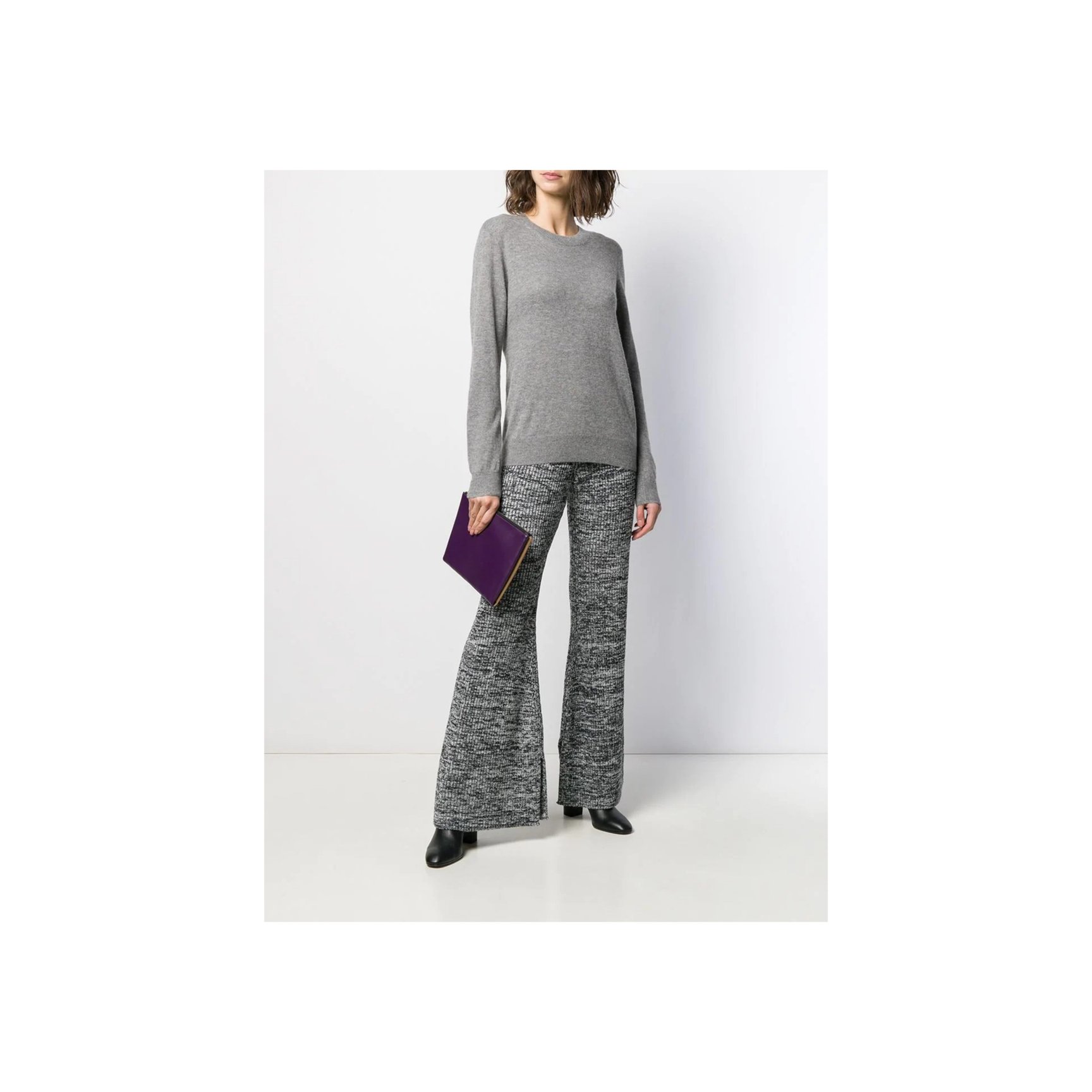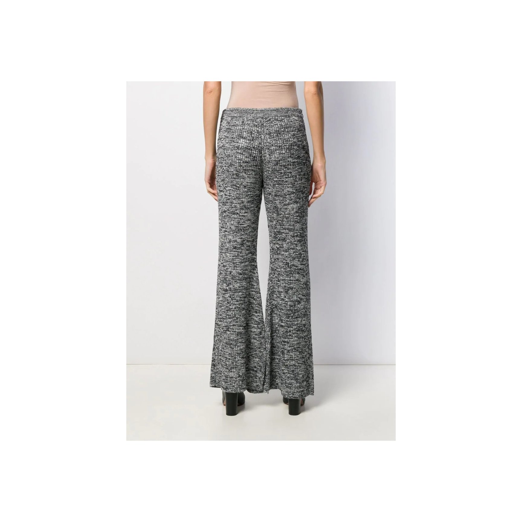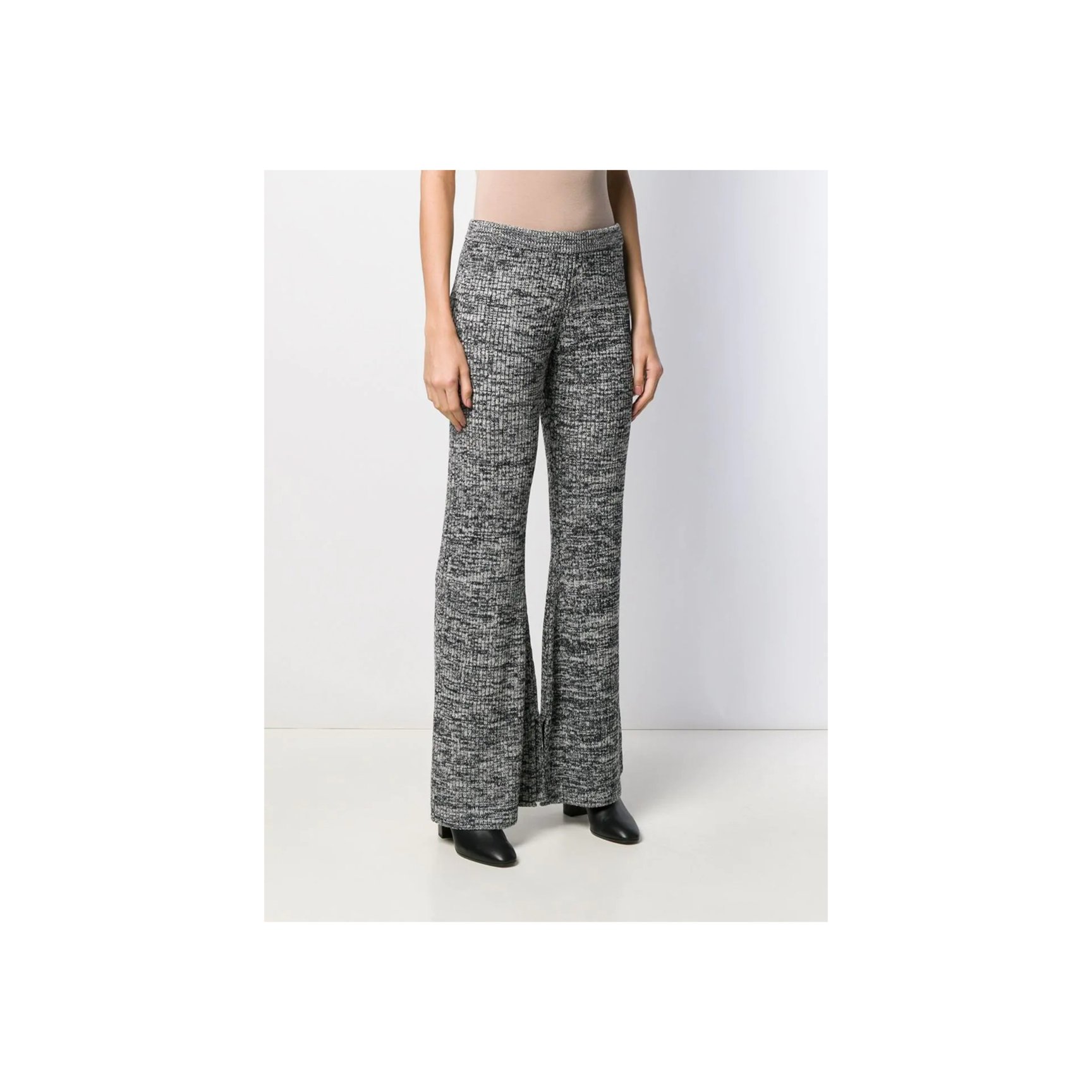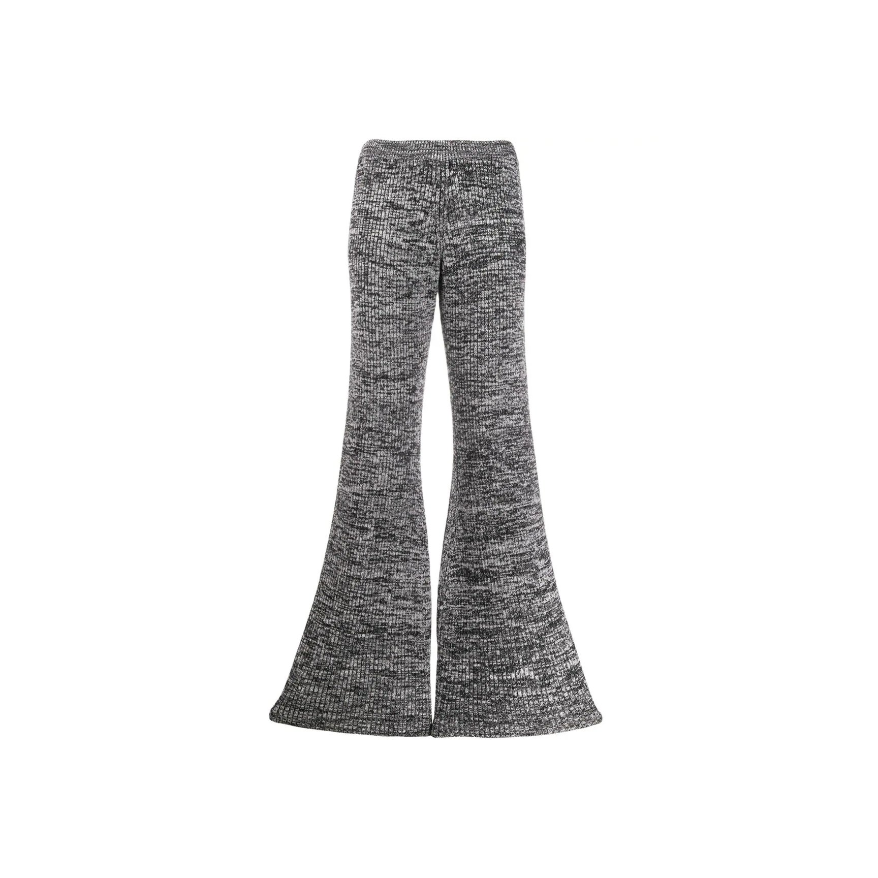 グレーメランジの厚手ニットを使用した、「ヴィクトリア ヴィクトリア・ベッカム(Victoria, Victoria Beckham)」のフレアパンツ。大胆に広がる裾が生み出すドレープが、動くたびに足元を華やかに演出してくれます。
