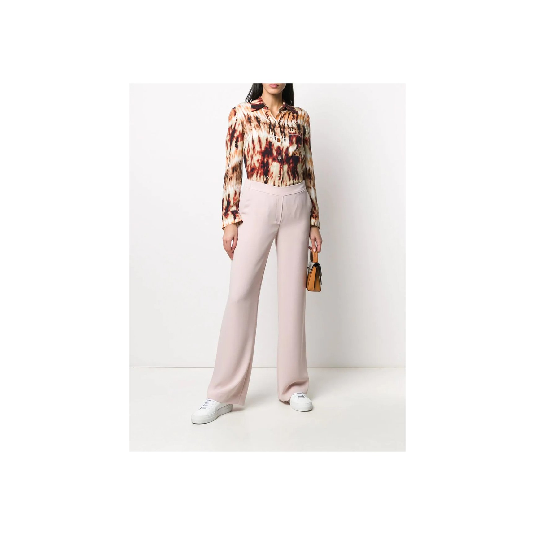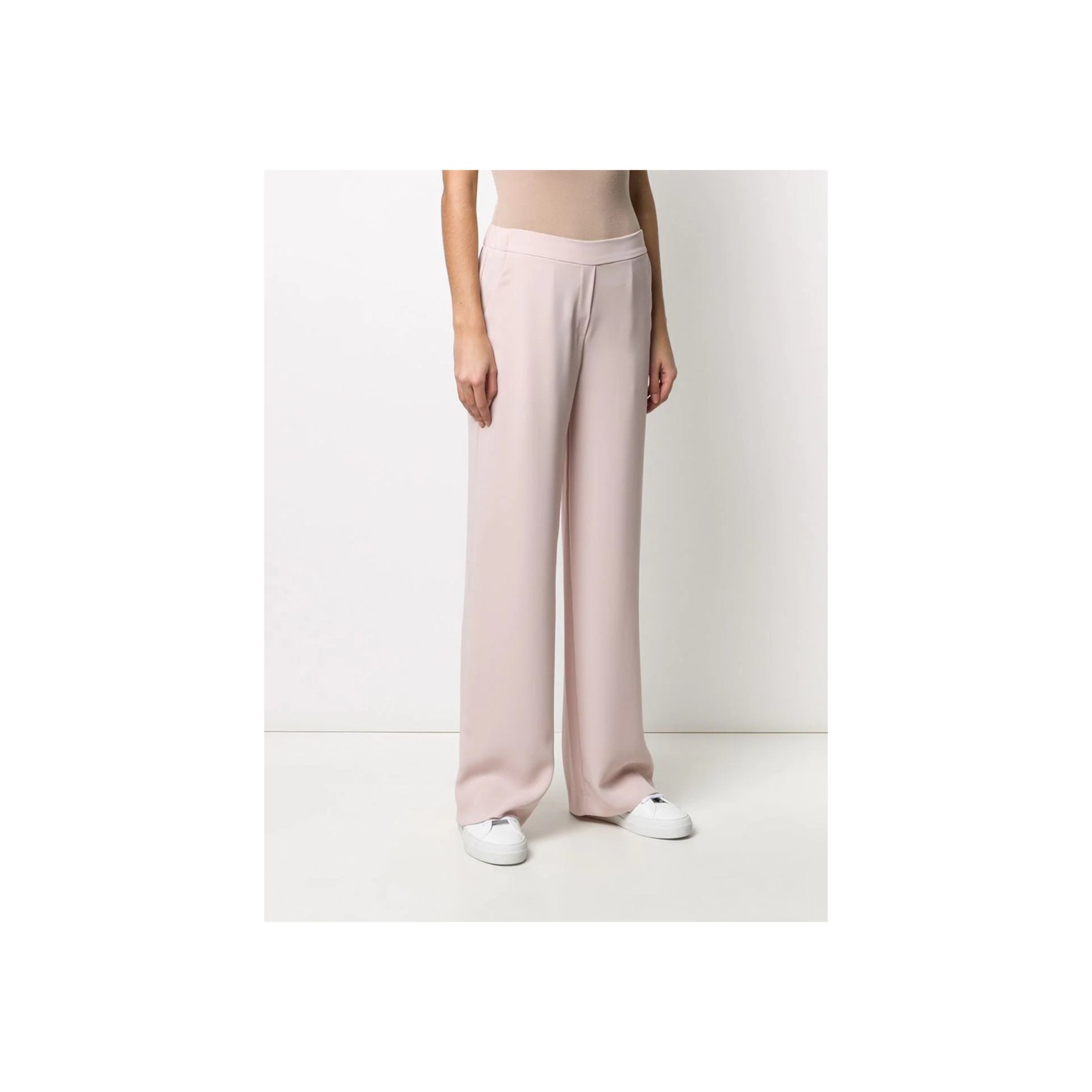 オンオフどちらにも使えるパンツなら、「パロッシュ(P.A.R.O.S.H. )」のこちらをピックアップ。落ち感のある素材で、シルエットがきれいに決まります。ホワイトのレザースニーカーと合わせて、クリーンに着こなしてみて。バックウエストは伸縮性のあるゴム仕様なのも嬉しいですね。