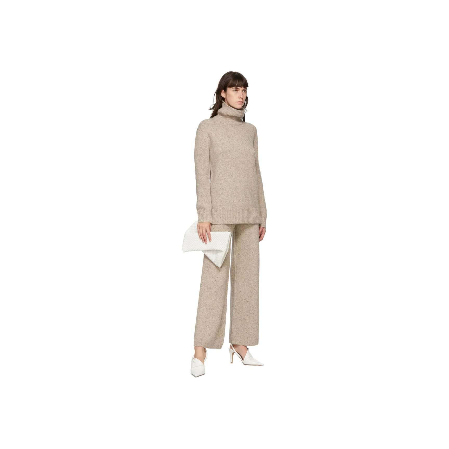 「ジョゼフ(JOSEPH)」のニットパンツは、ラムウールの混紡素材。ベージュカラーに入った細かなブラウンが表情に深みを与えてくれています。リラクシーなムードとモダンさの両立を叶えてくれる一着。