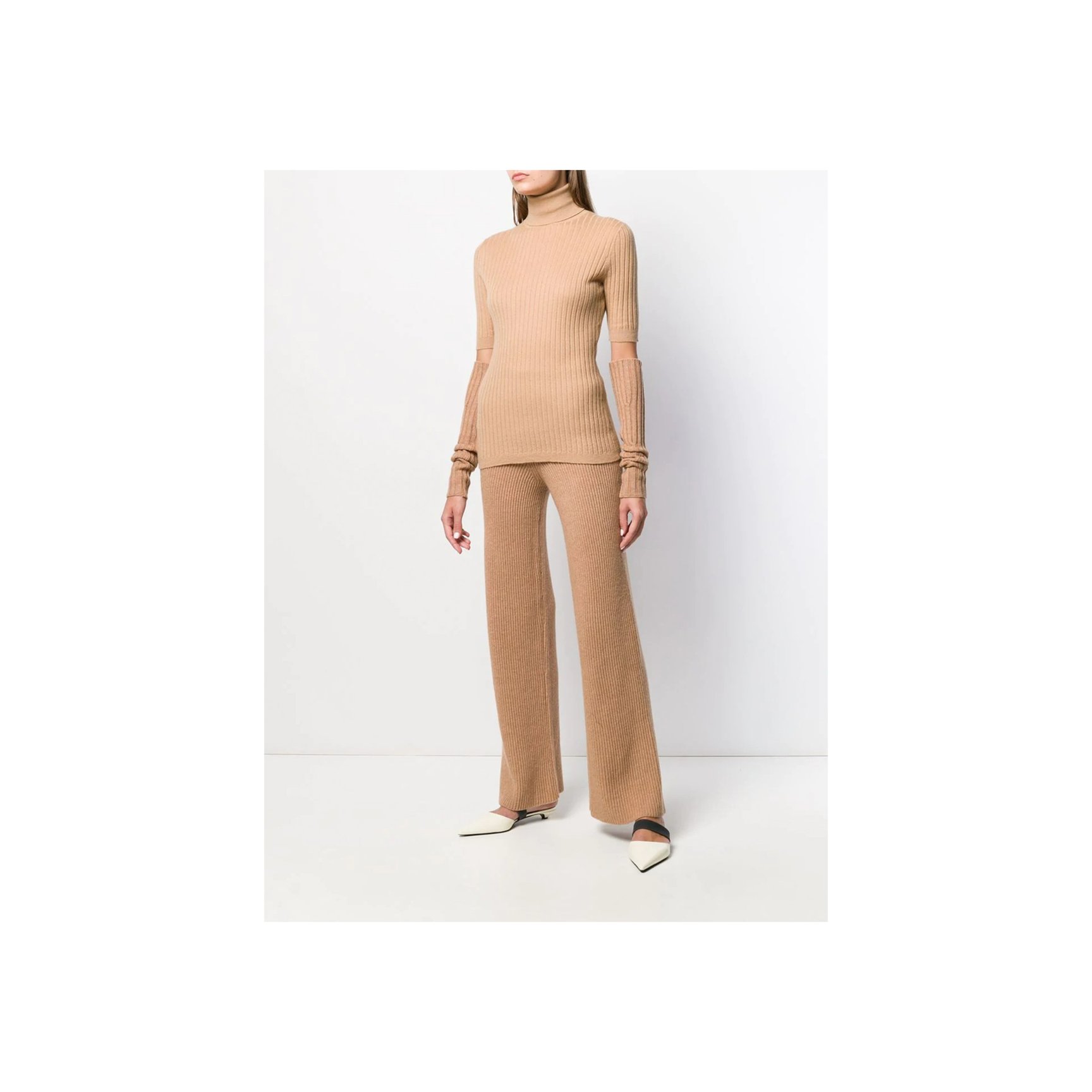 「カシミア イン ラブ(Cashmere in Love)」のブランド名のとおり、カシミアニットを贅沢に使用したウールパンツ。お腹まですっぽりと覆ってくれるハイウエストなので、底冷えする季節でもあたたかく。ニット素材ながら、リブのフィット感とヴァーティカルラインですっきりと着られます。
