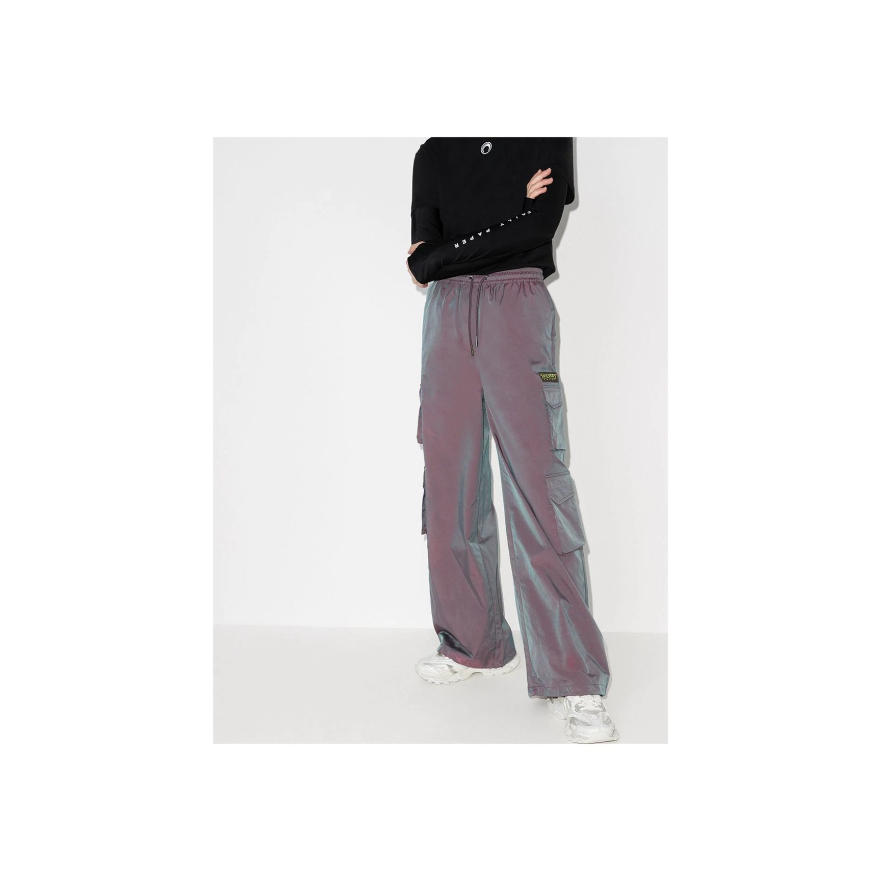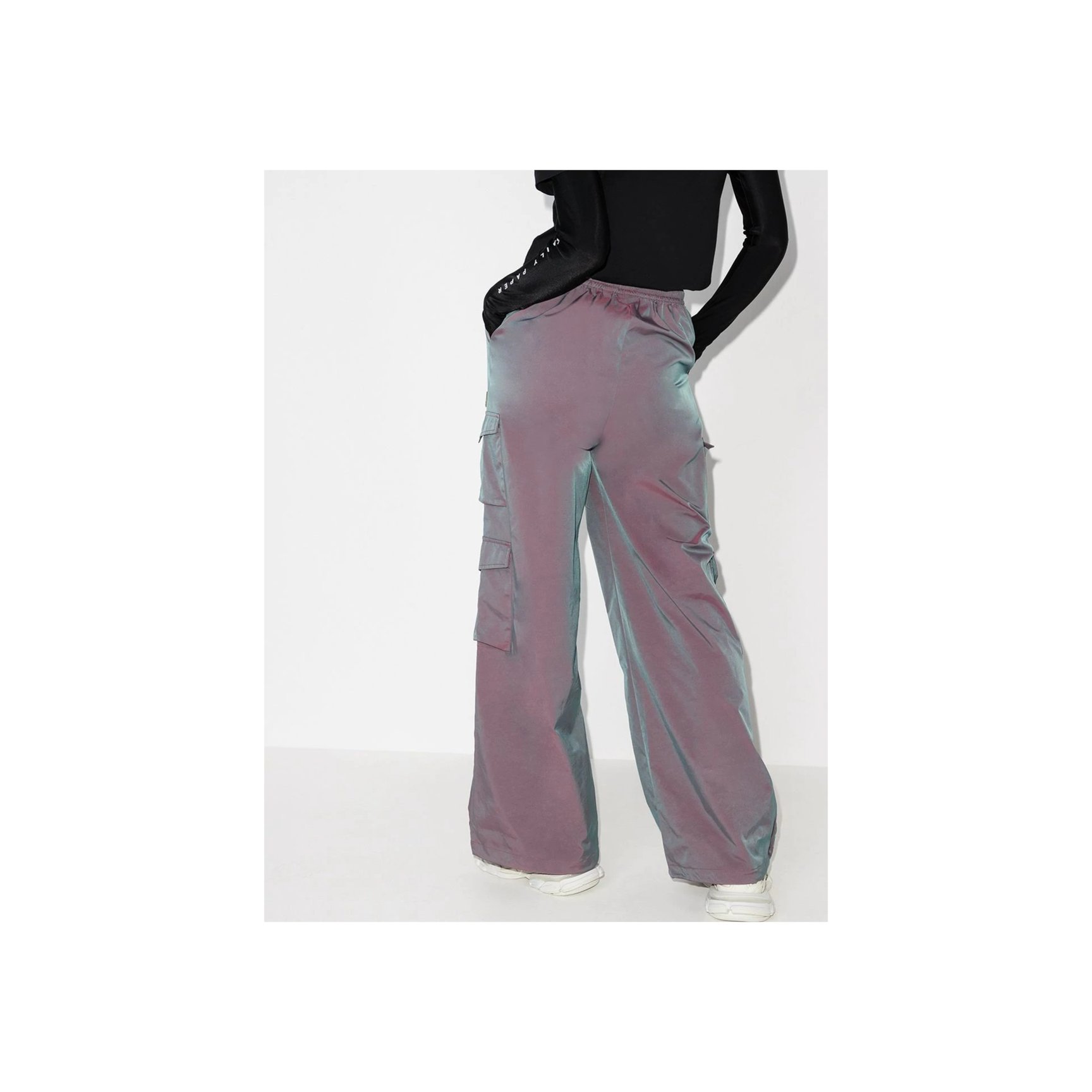 アムステルダム発「デイリー ペーパー(Daily Paper)」の、カーゴパンツライクに履けるパンツ。両サイドに2ずつ取り付けられたポケットの他、見る角度で色合いが変わるイリディセントグレーもユニーク。