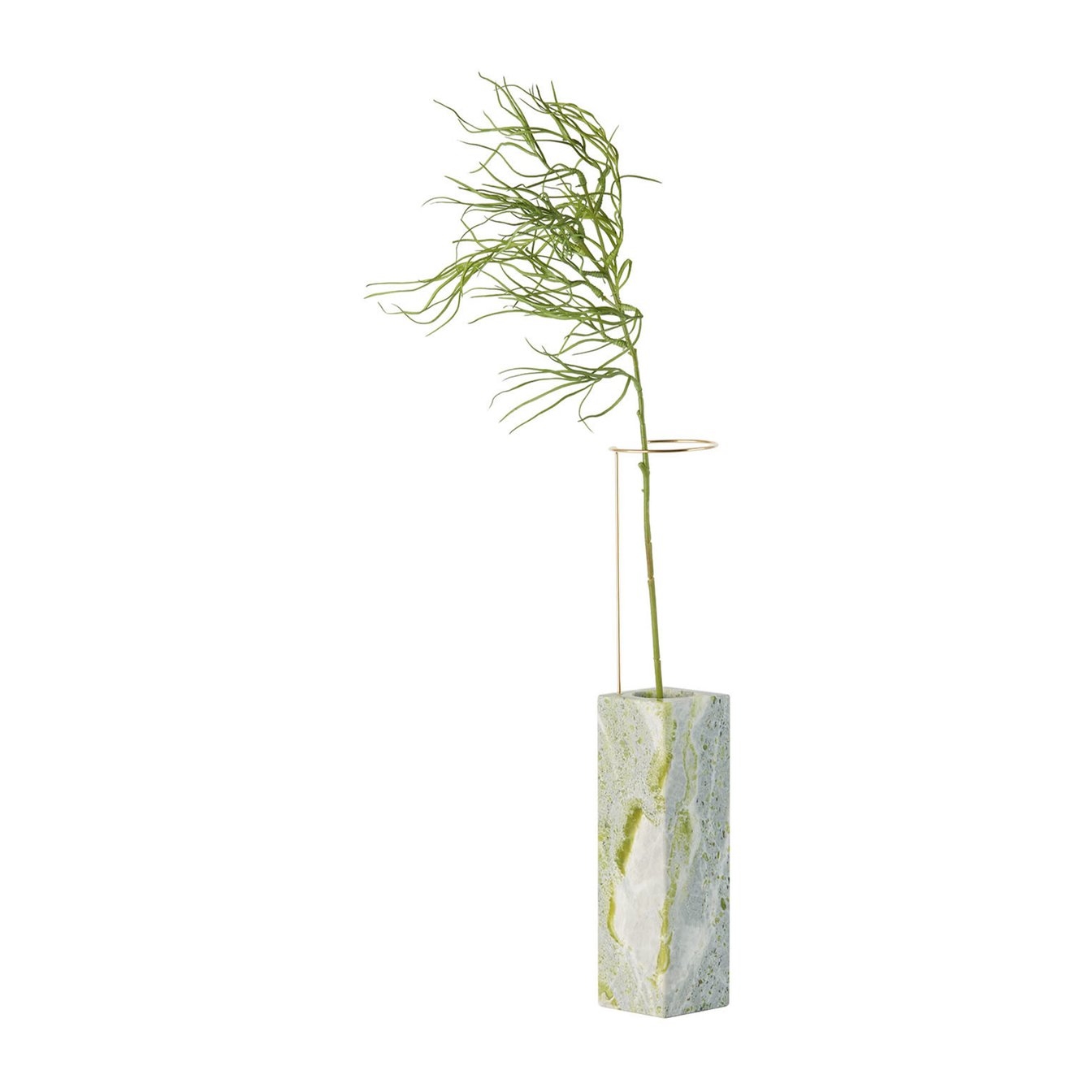 まずはお手軽な一輪挿しから。現代アートのようなコンセプチュアルな佇まいが印象的な、「ブロック ストゥディオス(BLOC STUDIOS)」のフラワーベース。華奢なワイヤーがさり気なく花を引き立ててくれるため、一輪挿しでもサマになります。高級感のある見た目とは裏腹に、大理石が産業廃棄物というギャップも。サステナブルなところも魅力の一品。