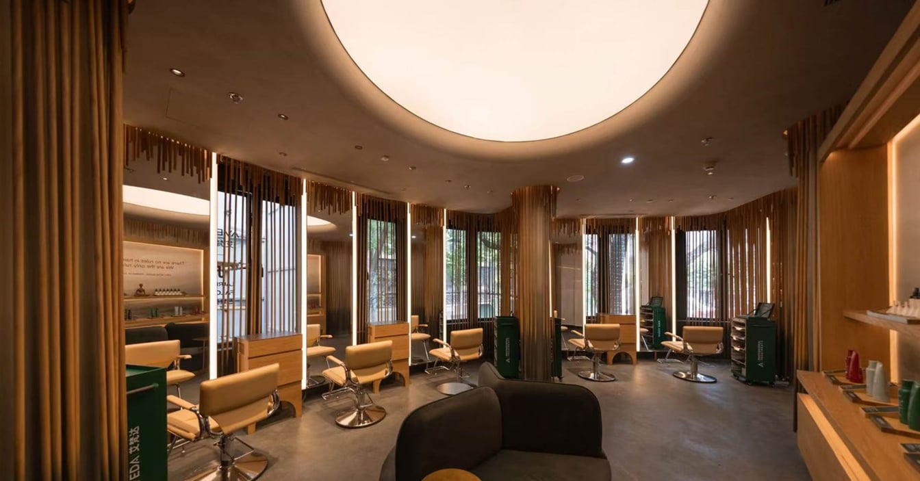 上海店内観。髪や頭皮のパーソナルケアはもちろん、五感に働きかける“センソリー ジャーニー”を体験できる静謐な空間が広がる