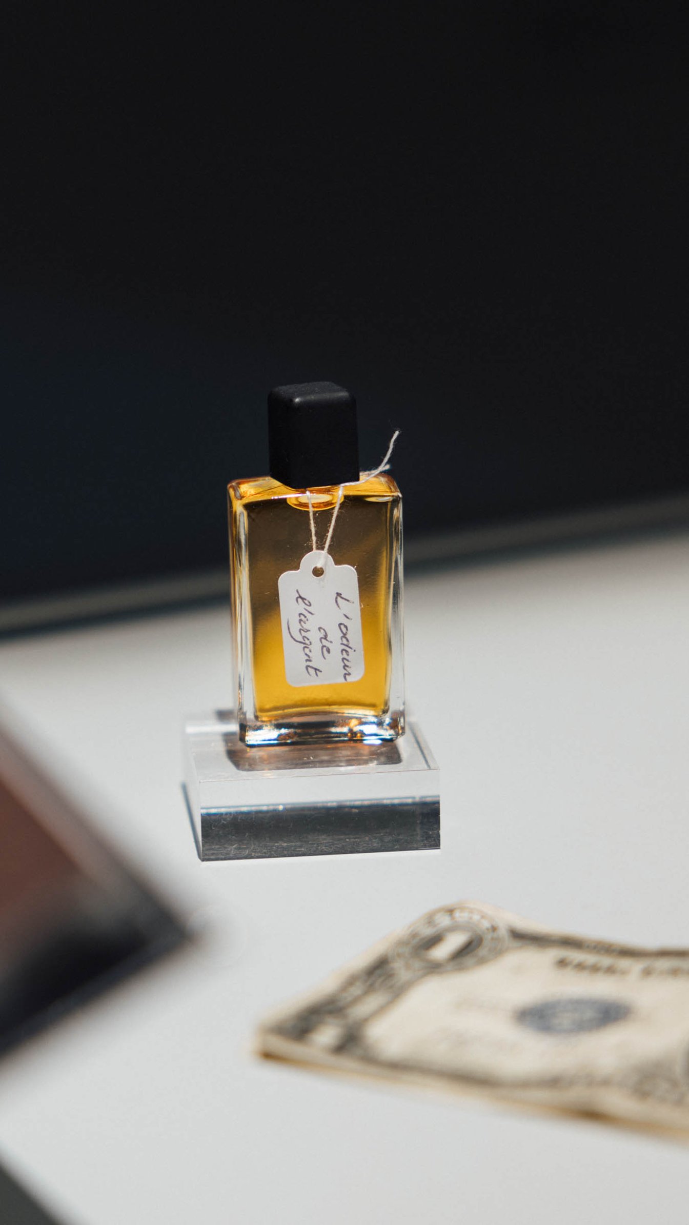 「どの作品も私の人生や創作の軌跡のモーメントを象徴しているので、ひとつだけを選ぶのは難しいですね。ただ、あえて選ぶとすれば『L’Odeur de L’Argent(お金の香り)』。私の転機となった特別な作品で、私の仕事が香水の枠を超え、空間や光、感情を伴った芸術表現へと展開した瞬間です。今回の回顧展で改めてこの作品を目にしたとき、最初のインスピレーションを思い出すと同時に、香りと創造への情熱がここまで自分を導いてくれたことを再認識しました」