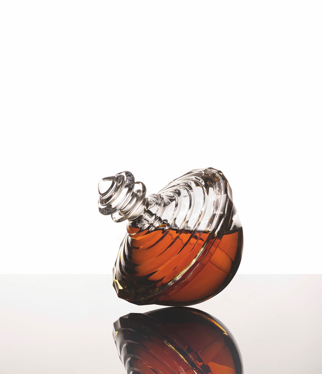 その名も「レ・トゥピーズ(独楽)コレクション」。“独楽(こま)”にインスパイアされたという斬新なボトルは、ブランドのアーティスティックディレクターであり建築家のクリストフ・トレメール(Christophe Tollemer)が約3年かけて完成。片手のひらにボトルを納め、もう片方の手でキャップを取り肌にまとう…そんな美しい仕草をイメージしてデザインされているから、“置く”という概念から離れ、360度どこからも同じに見える、まさにオブジェ。クリスタルメーカーによるハンドメイドゆえ、限定品としての展開である。