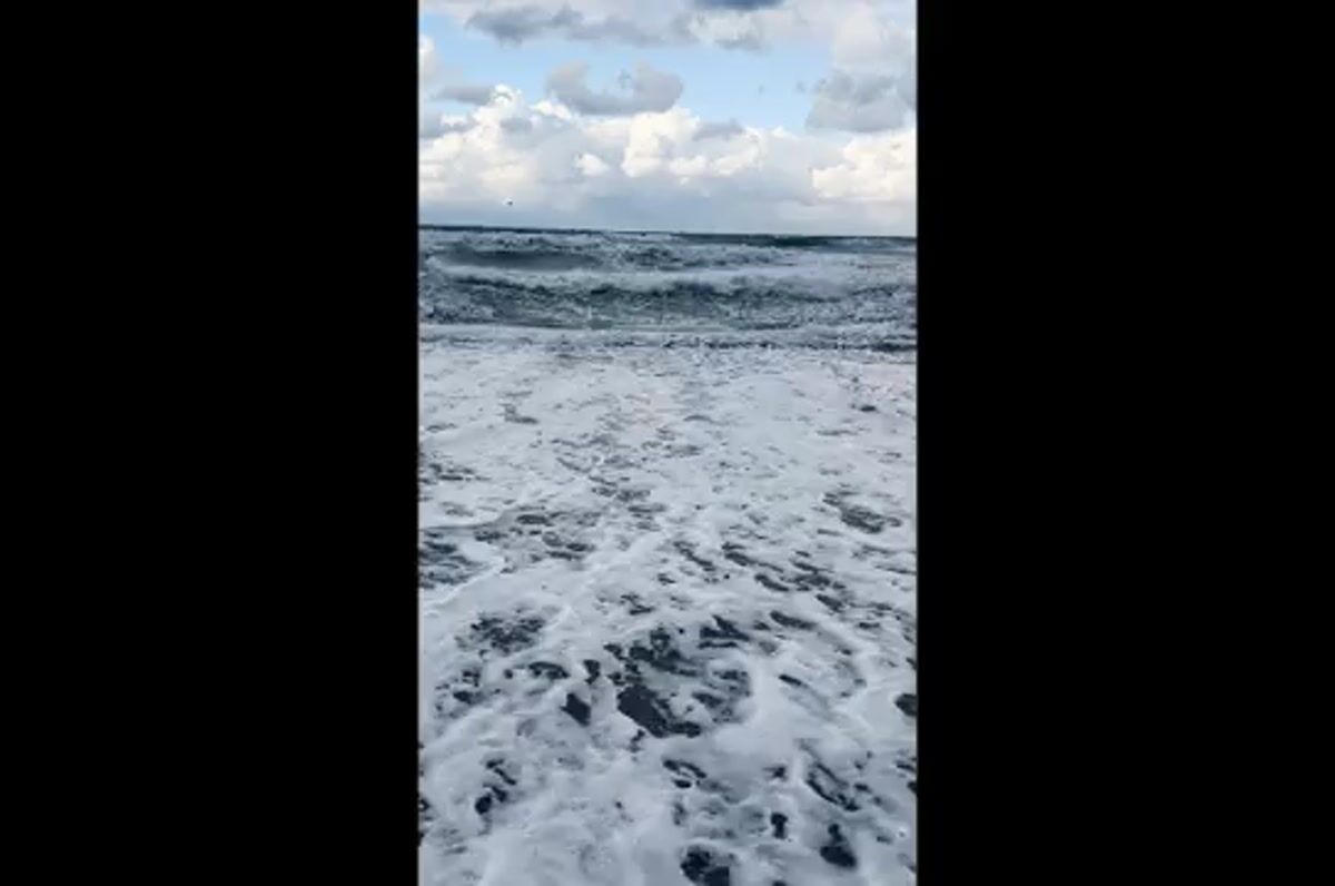 サウナ・プール・外気浴を2セット終えたら、どうしても海が恋しくなってしまい、スタッフの皆さまに見守られながら白波の立つ水辺まで行ってみることに。