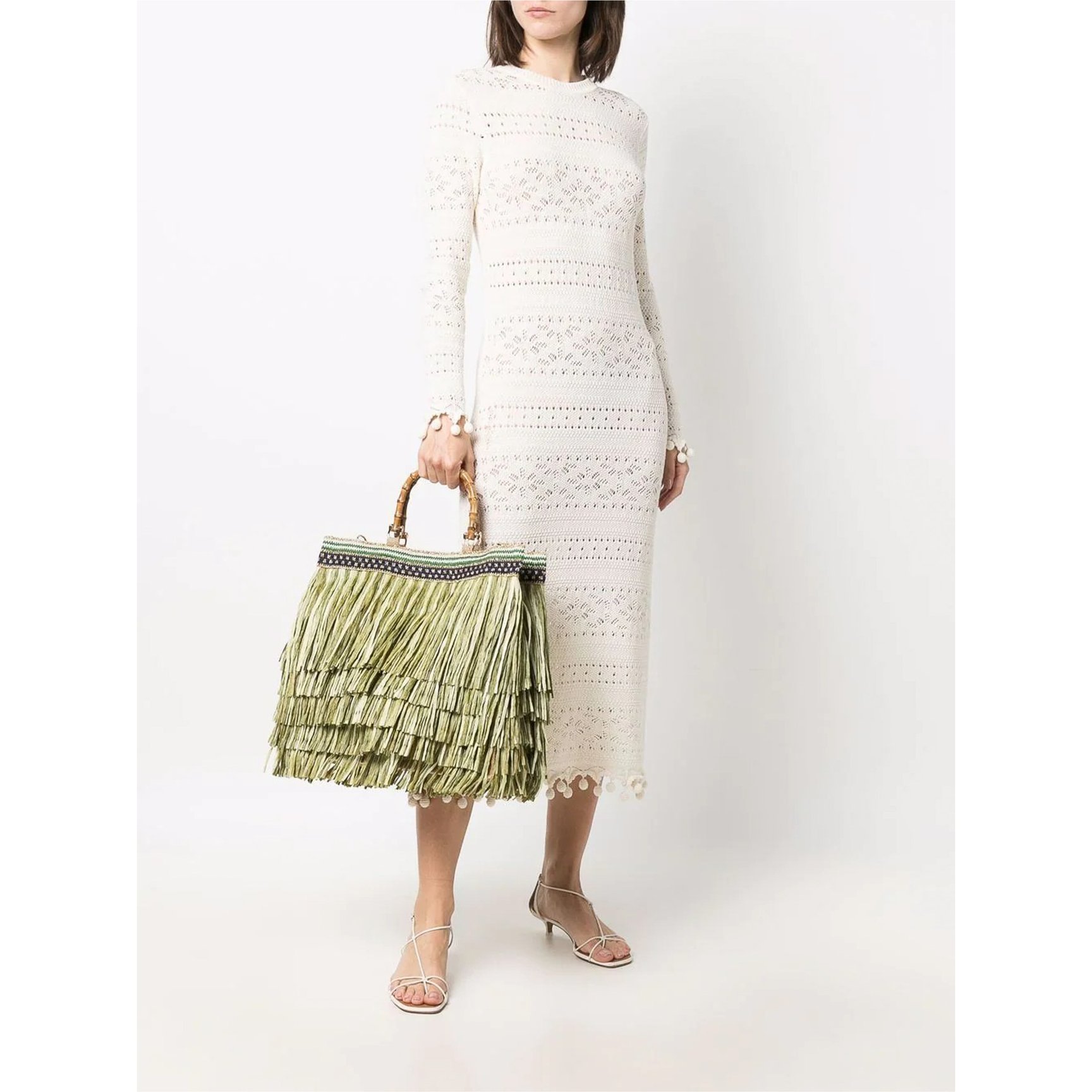 ミラノのLe 5 Vie地区の職人工房で誕生したイタリアのバッグブランド「ラミラネサ(la milanesa)」のフリンジバッグは、全体的なグリーンフリンジがまるで春の草原を表しているよう。天然素材やリサイクル素材を使ったクリエーション、ミラノの職人工房から回収した生地や素材を使った装飾がサステナブルファッションと地元労働者の価値を高めます。
