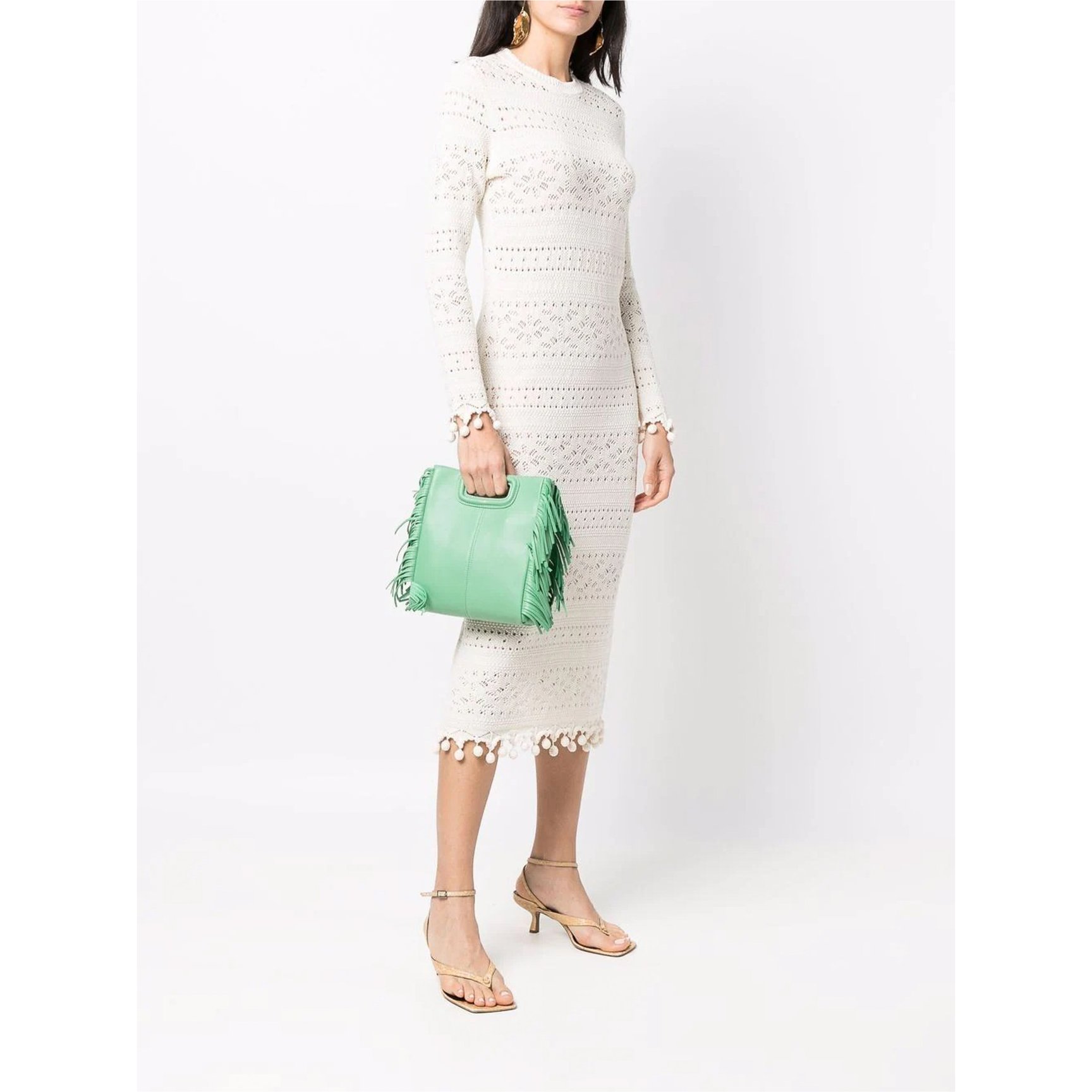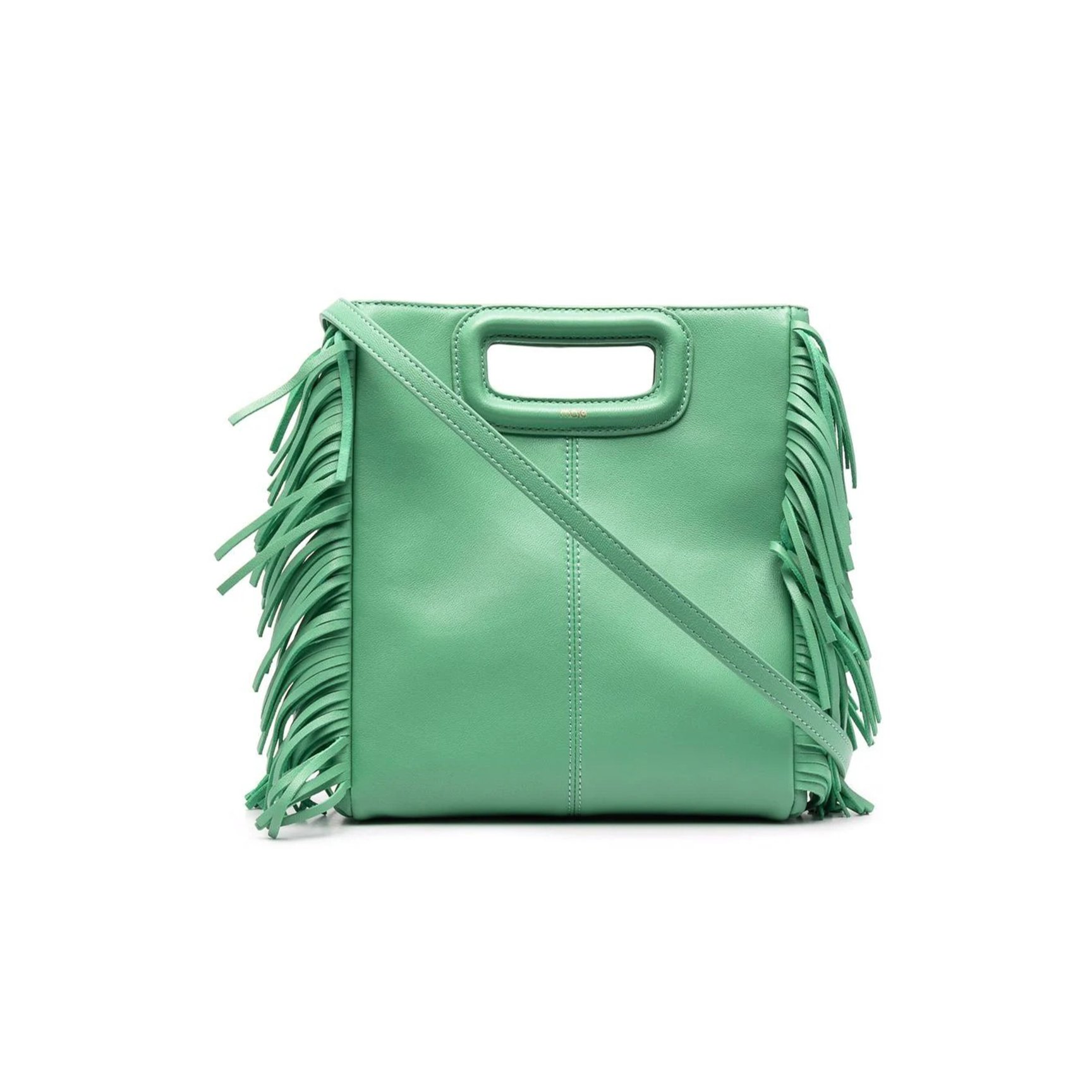 明るい春にぴったりのグリーンカラーが特徴のバッグは「マージュ(Maje)」のもの。上品に持てるハンドバッグタイプ、シンプルなフォルムのサイドにフリンジあしらわれていることで1点投入でも存在感を与えます。グリーンのほか、ピンク・ブラックカラーも取り揃えています。