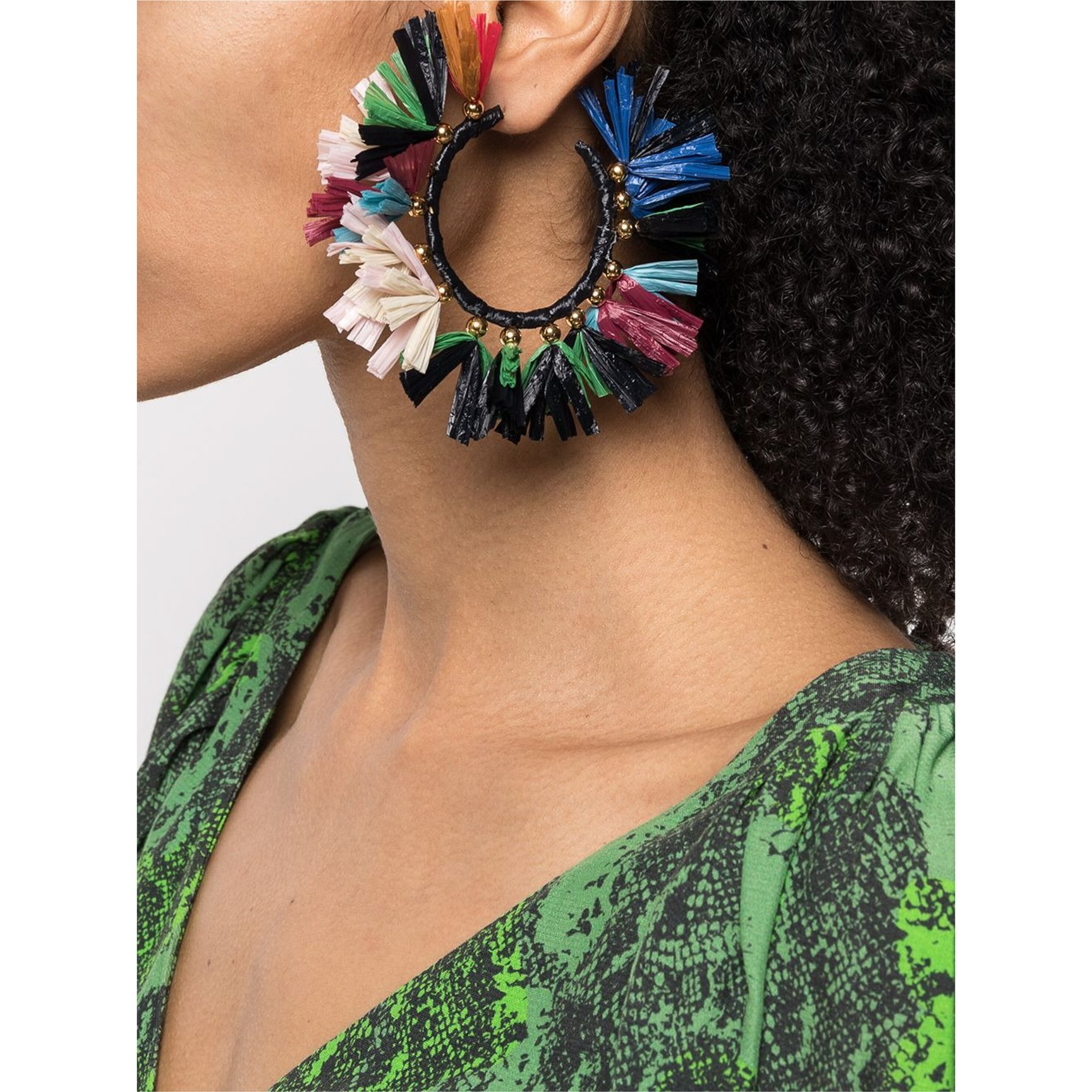 はっと目を引くプリントをデザインコンセプトに置く「ラダブルジェー(La DoubleJ)」のフリンジピアス。顔まわりを華やかに彩る、まるで南国にいる野鳥のような鮮やかな色合いが春にぴったり。フリンジは1つ1つゴールドトーンのビーズが根本にあしらわれており、細かなこだわりにハッとさせられます。
