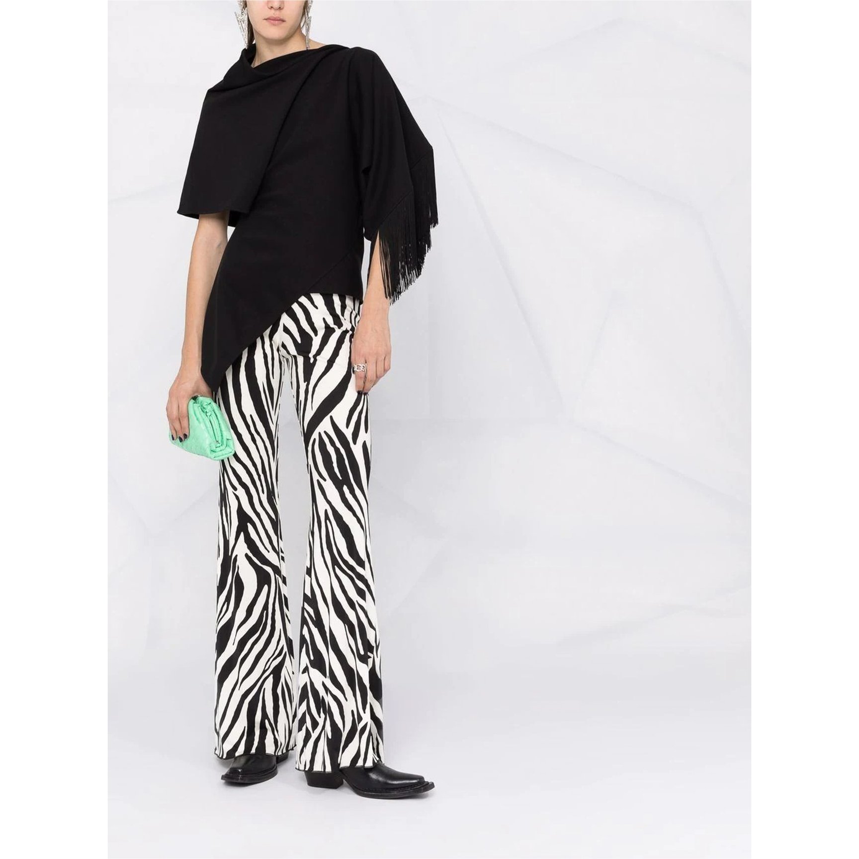 イタリア発のブランド「ジ・アティコ(The Attico)」のフリンジブラウスは、大胆なアシンメトリーデザインが特徴。袖も裾も左右で大きくデザインが異なり、1枚で存在感抜群です。左袖の大きめフリンジが、服全体に動きを加えます。