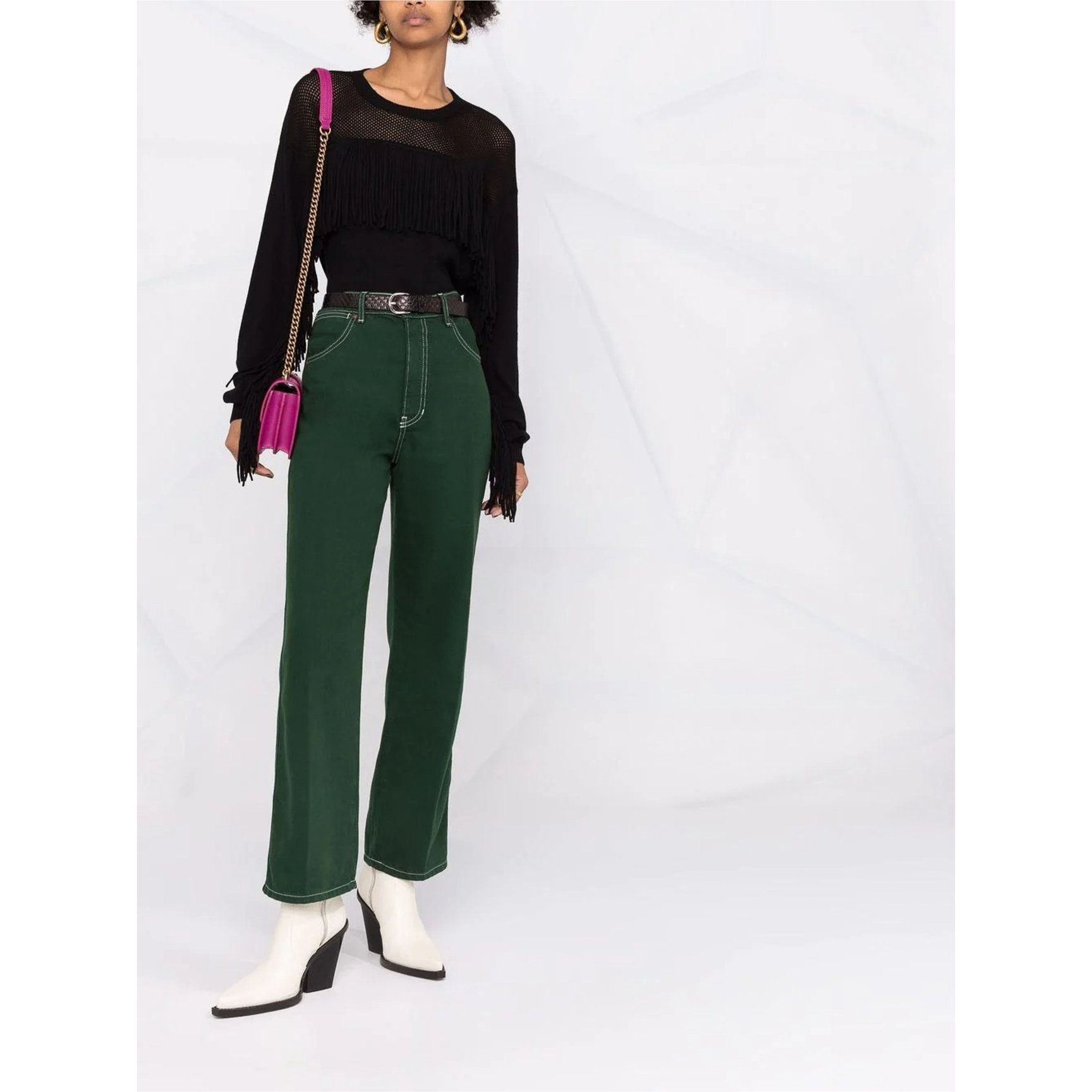 エネルギッシュでグラマラスなデザインで知られるイタリアのブランド「ピンコ(PINKO)」から登場するのは、袖に大胆なフリンジがあしらわれたセーター。鎖骨から上の部分がややシースルーになっているため、これからの季節に最適な一枚。どんなボトムスにも合わせやすい、シンプルなデザインが一押しポイントです。