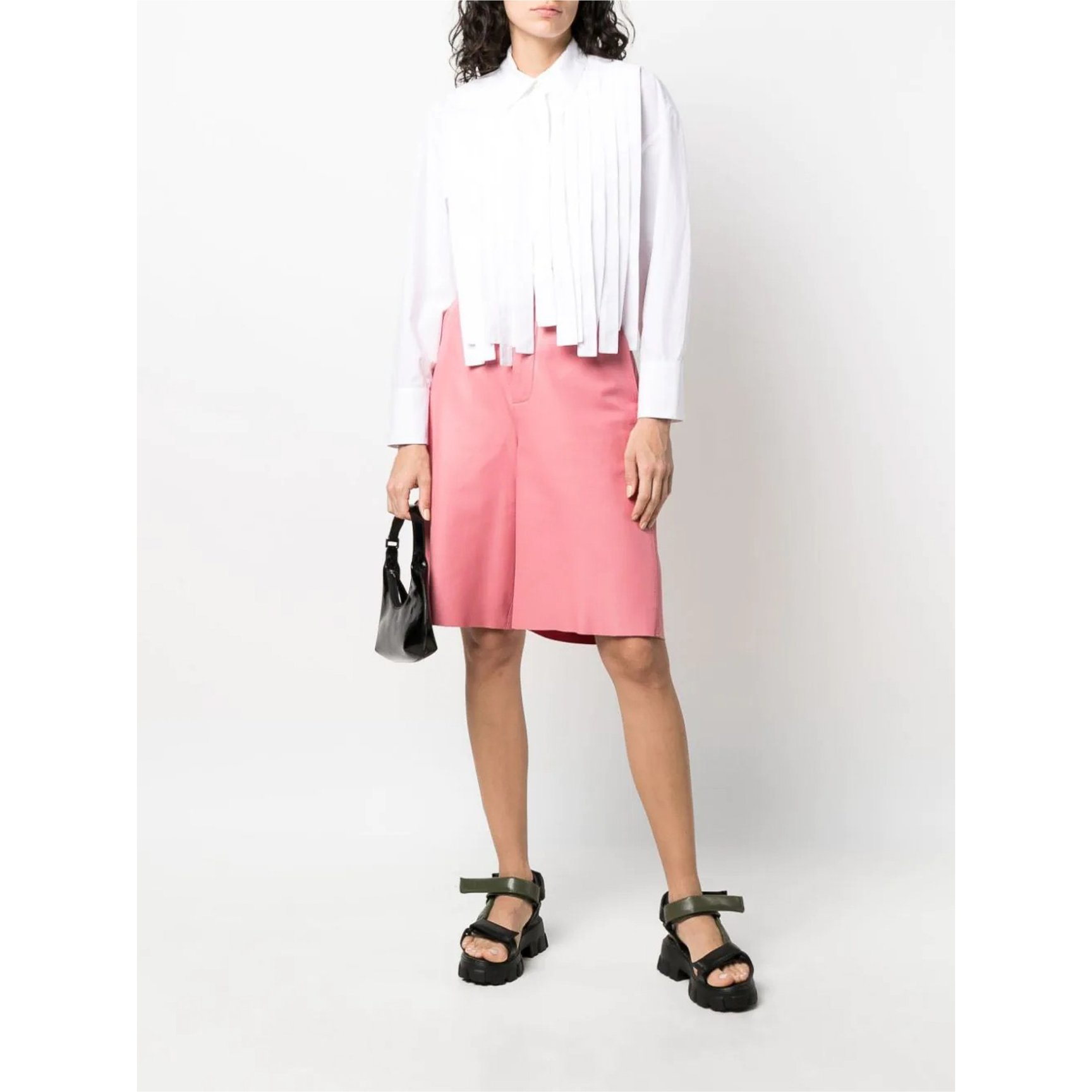 フロントにあしらわれた大ぶりなフリンジが特徴のシャツは「エム・エス・ジー・エム(MSGM)」のもの。一枚だとシンプルすぎてしまう白シャツですが、フリンジがあることでデザイン性がアップ。裾がショート丈なので、ハイウエストのボトムスと相性抜群です。