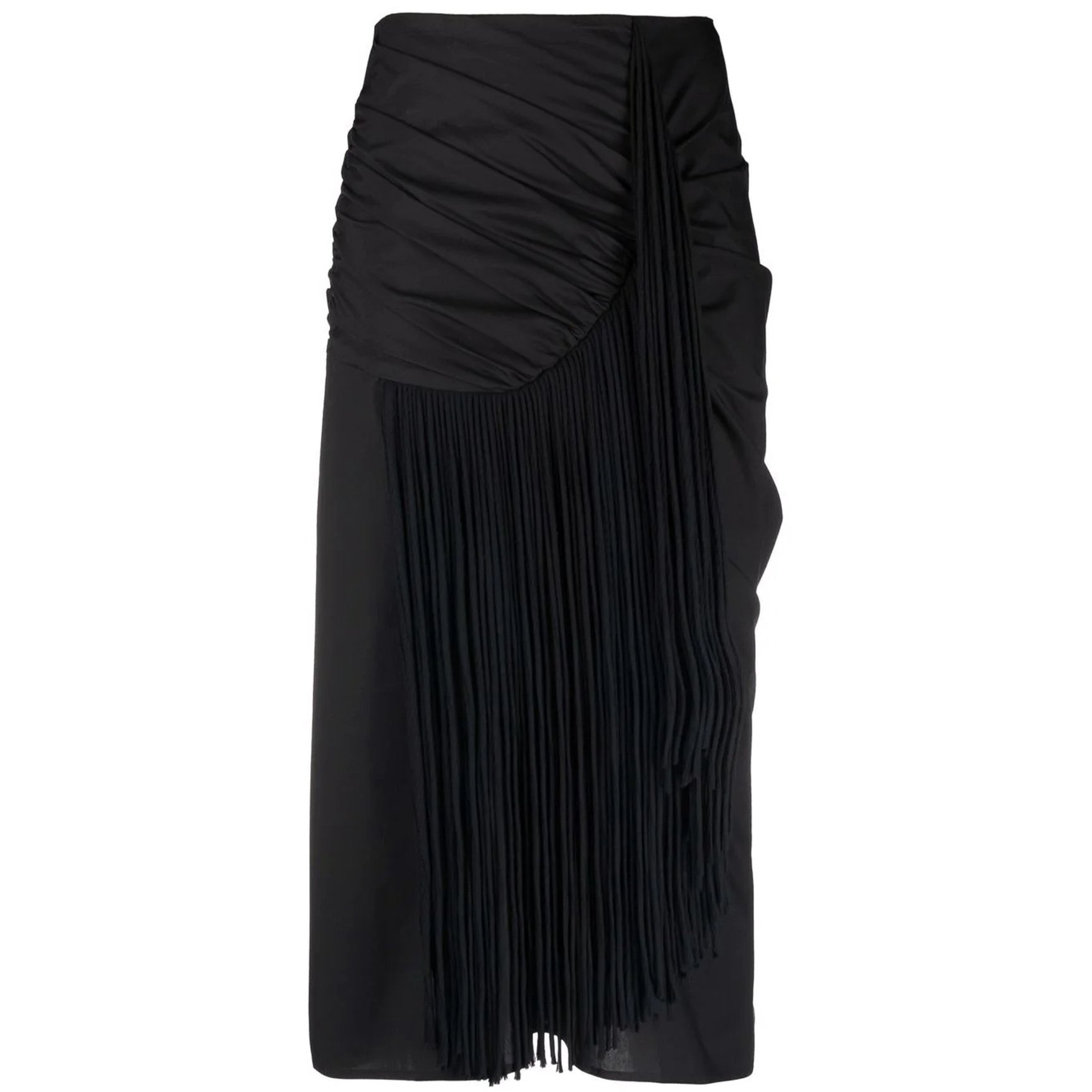 アイコニックなスタイルとエネルギッシュなロックテイストを融合させる「カール・ラガーフェルド(Karl Lagerfeld)」のフリンジスカート。長めフリンジがあることで、上品なミドル丈に。ハイウエストのタイトスカートなので、細見え効果も抜群です。