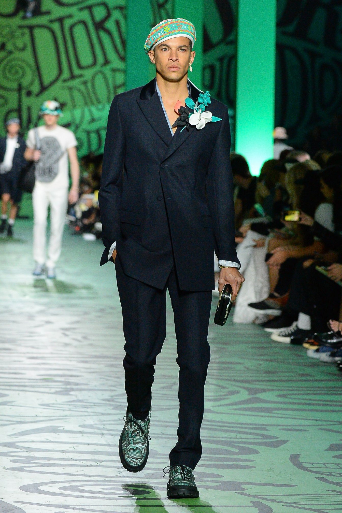 J−HOPEさんは、スリムなシルエットのスーツを着用。コレクションルックの魅力が詰まったクールな着こなしを披露しました。