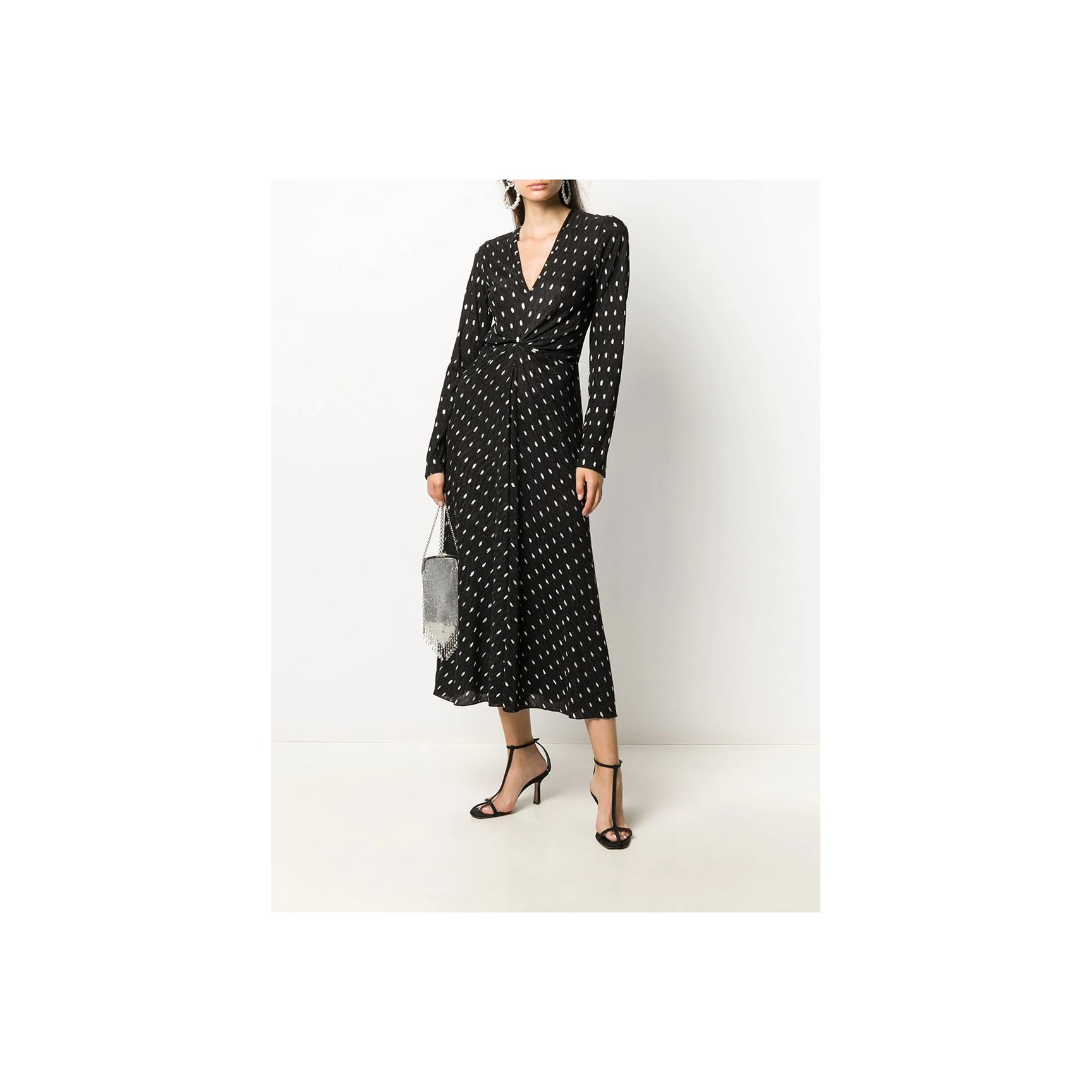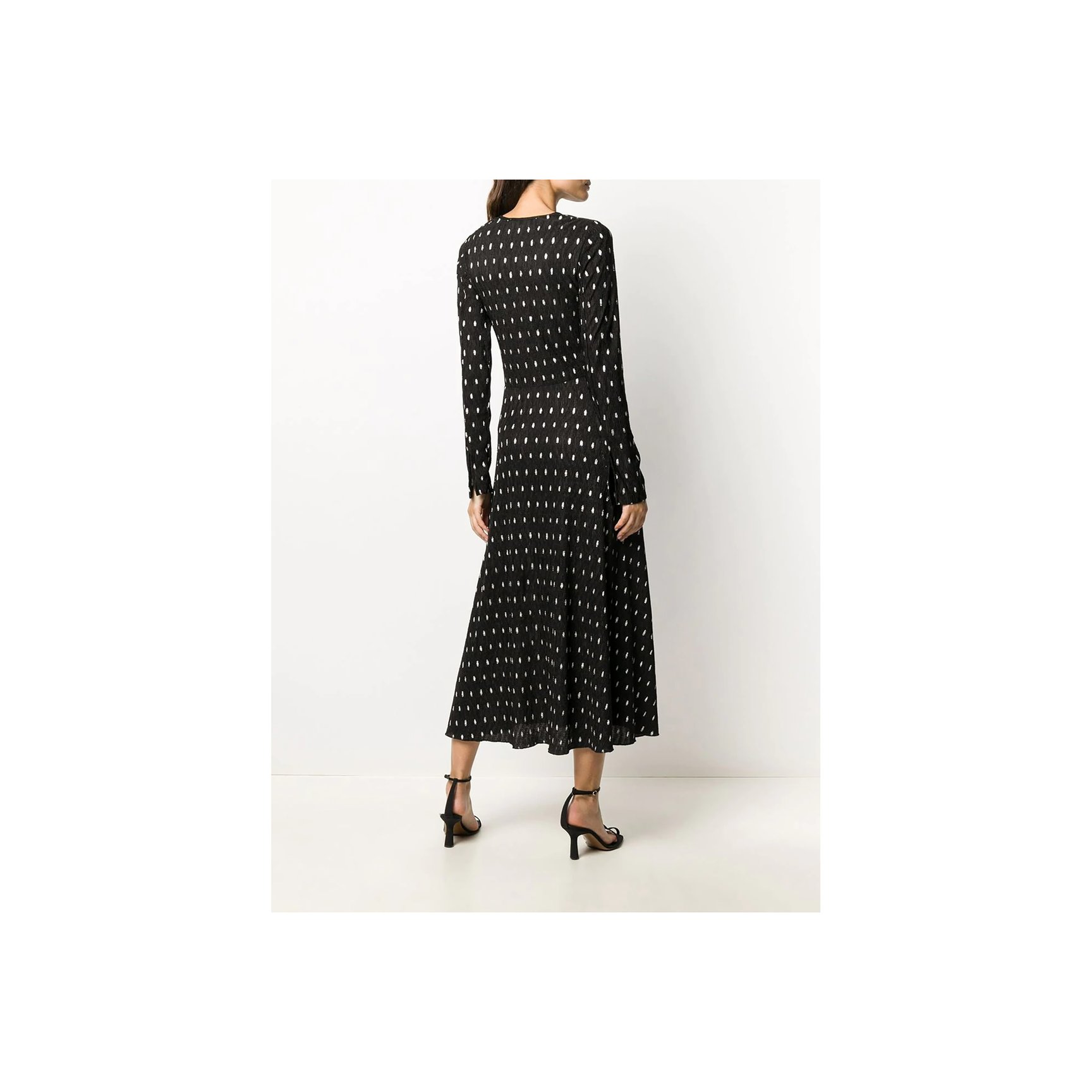 同じく「ローテート バーガー クリステンセン」から、もう一着、モノトーンのポルカドットドレスも紹介。ギャザーが寄せられたドレスはよりスリムなフィット感で、Vラインの首元もエレガントです。