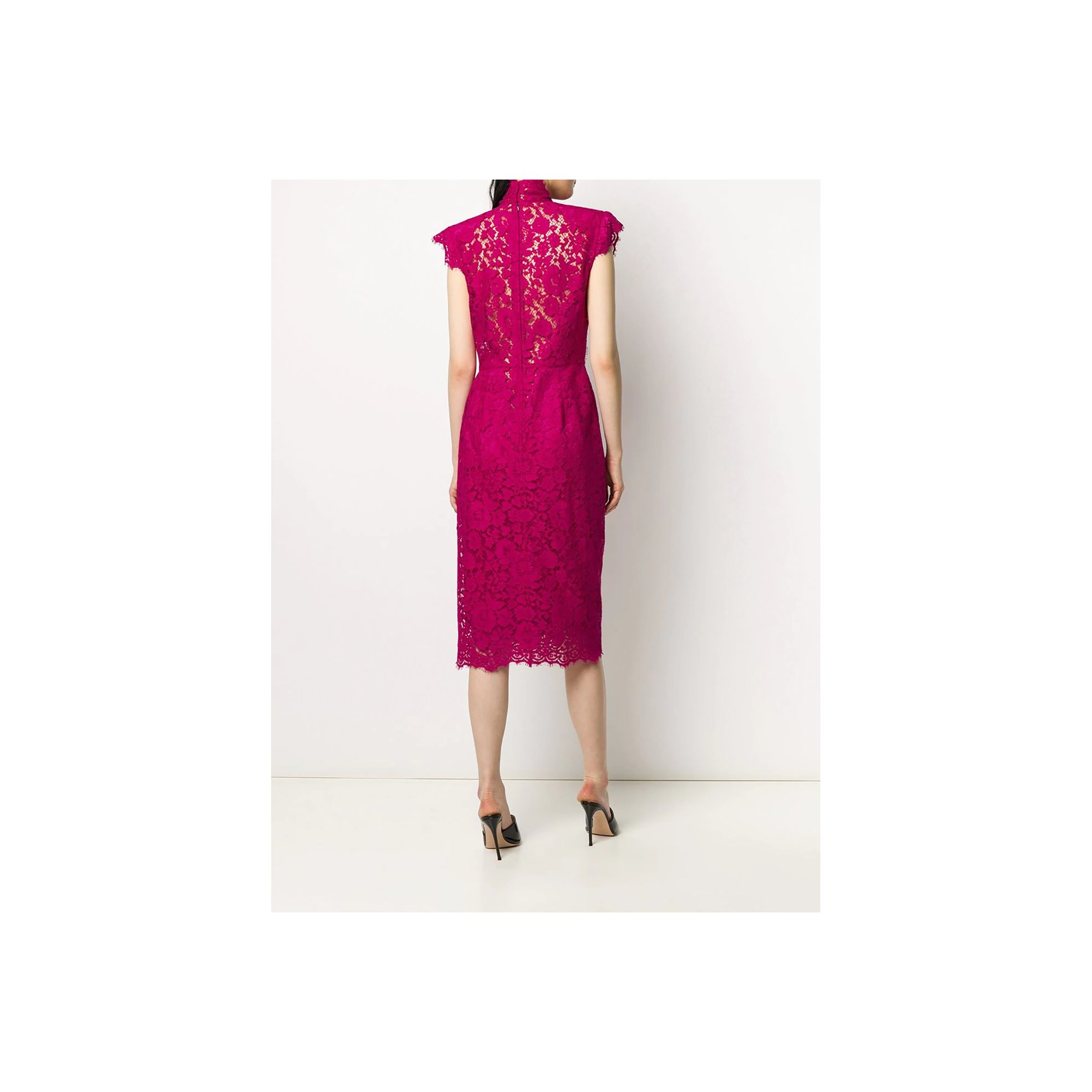 フューシャピンクが鮮やかな、ミディアム丈の「ドルチェ&ガッバーナ」のワンピースです。ギャザーの寄せられたスカート部分と、胸元のボウタイでさらに華やかに。