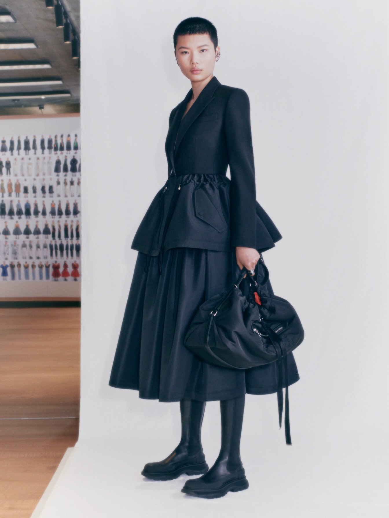 冨永愛さんが、7月4日放送のバラエティ番組「日曜の初耳学」に出演。腰回りのペプラムが目を引くジャケットとスカートのセットアップは、「アレキサンダー・マックイーン(Alexander McQueen)」2021年プレ秋冬ウィメンズコレクションから。番組内のイタンビューでは、パリコレの復帰や日々のルーティンについて語っていました。