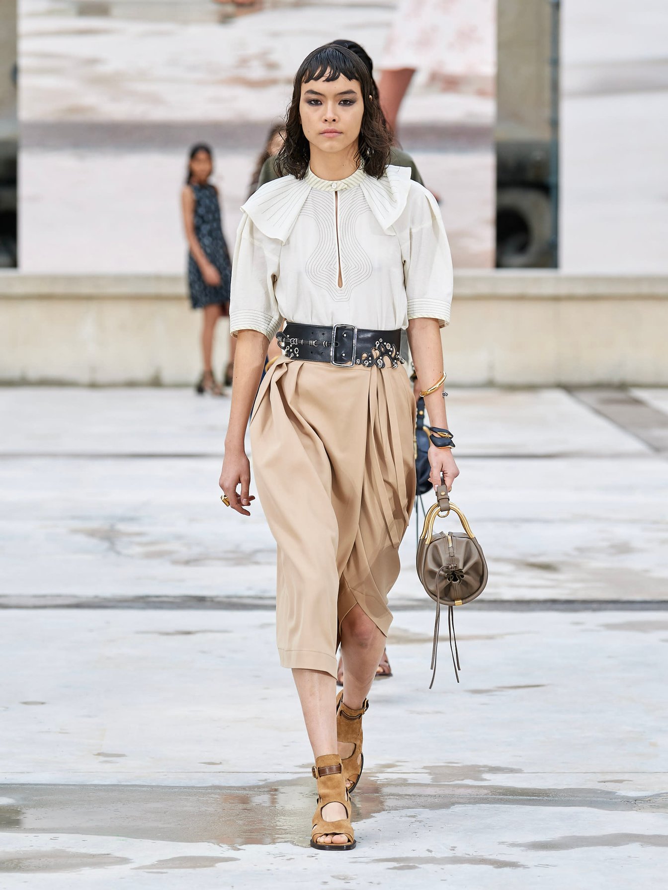 7月6日放送の「火曜サプライズ」に出演した戸田恵梨香さん。「クロエ(Chloé)」の2021年春夏コレクションからブラウスとスカートを着用しました。ブラウスは袖口や首元、胸などにミニマルなラインの刺繍が施されています。