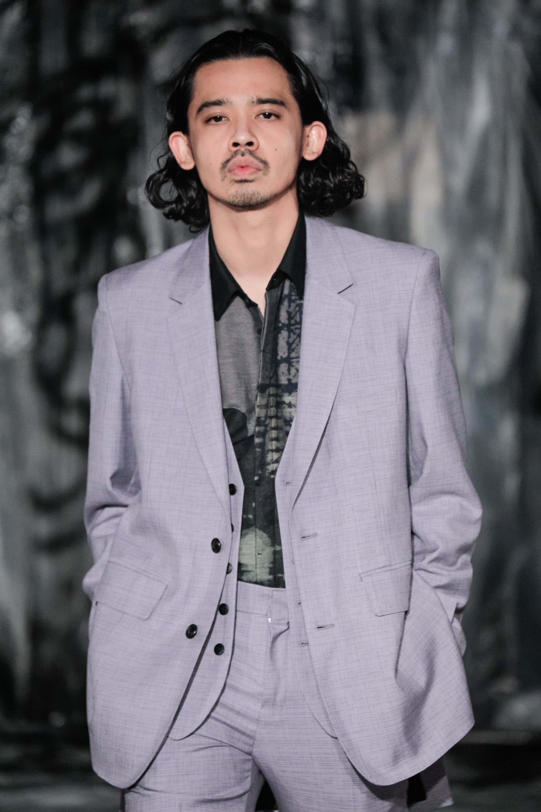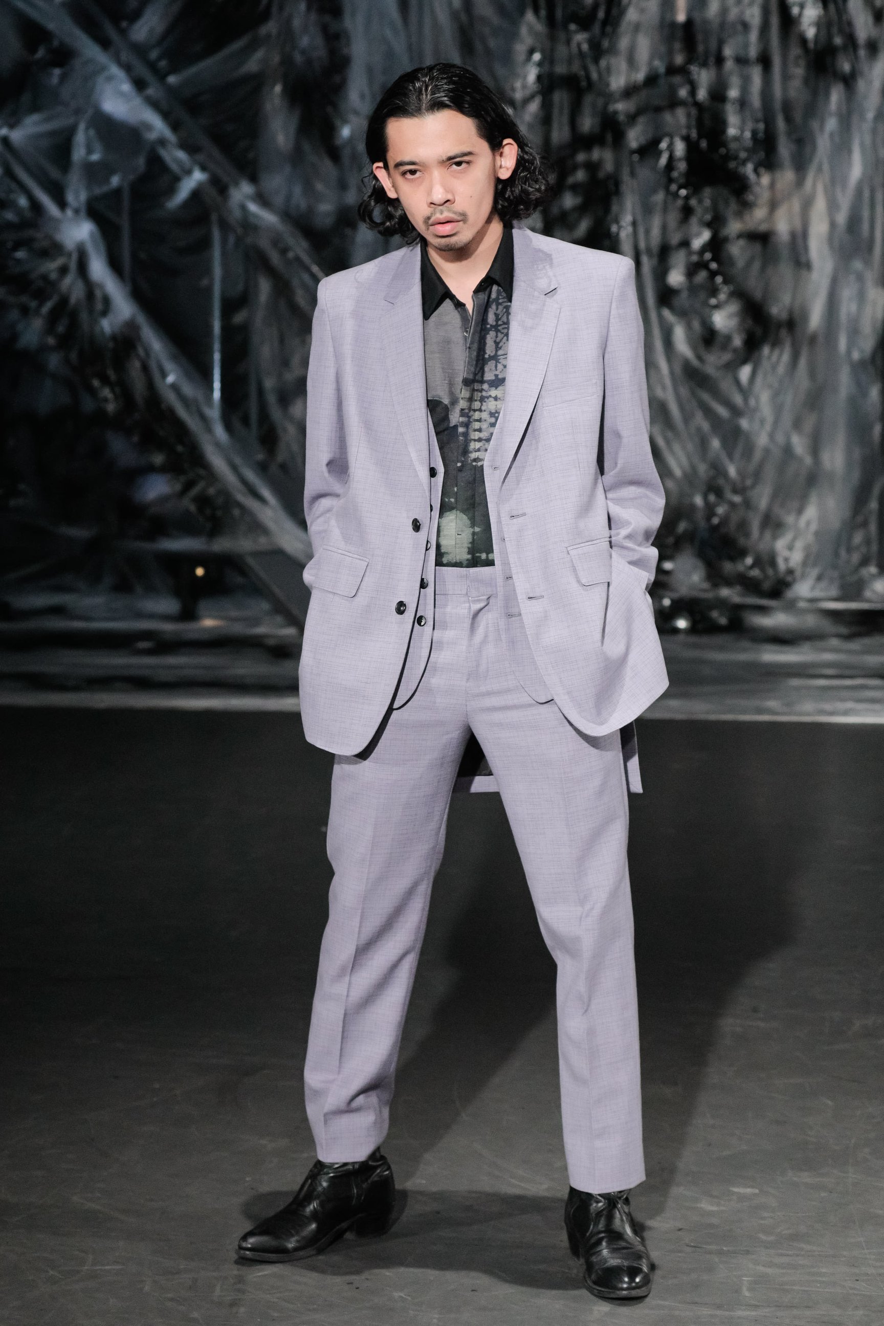 磯村勇斗さんが7月7日の「ホンマでっか!?TV」に登場。「アズマ(Azuma.)」2021年秋冬コレクションからパープルのスーツを着用し、ブラックのシャツと組み合わせてモードに着こなしていました。