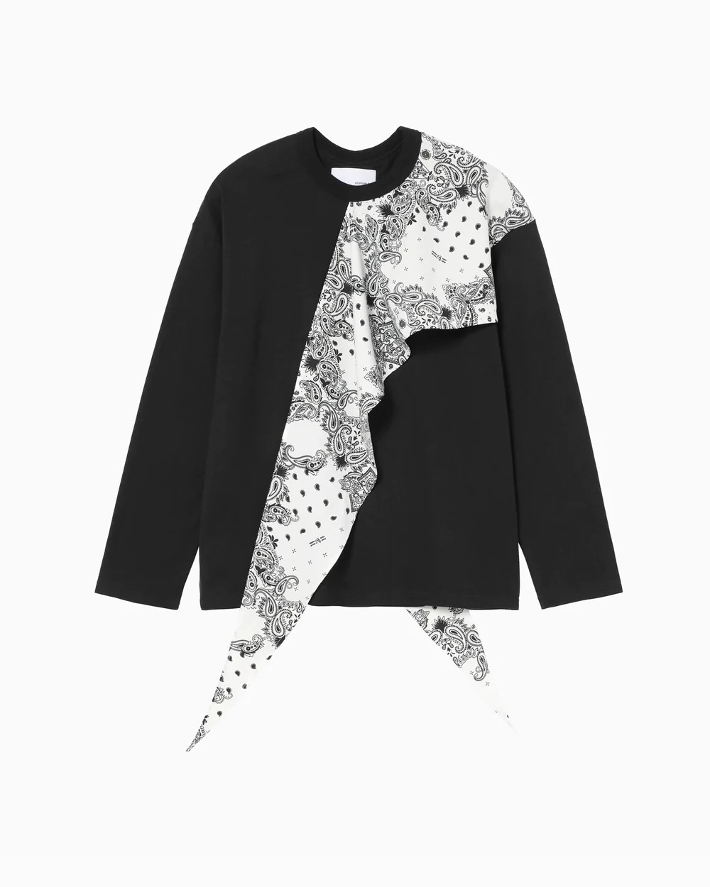 肩部部にペイズリー柄のスカーフを縫い込んロンTは「ヨシオクボ」の定番アイテム。身幅の大きいボックスシルエットかつ、日本人の体型に合うよう丈や身頃の長さが計算されており、ロンTですが綺麗めに着ることができます。スカーフのアレンジ次第で表情が変わるので、その日のスタイリングに合う着こなしを模索していくのも、このアイテムの面白さの1つかも知れません。少し肌寒くなってきたら、薄手のジャケットと組み合わせても良し。スカーフは低い位置で結んで上げると、ジャケットに干渉せずに綺麗なシルエットが保つのでおすすめです!