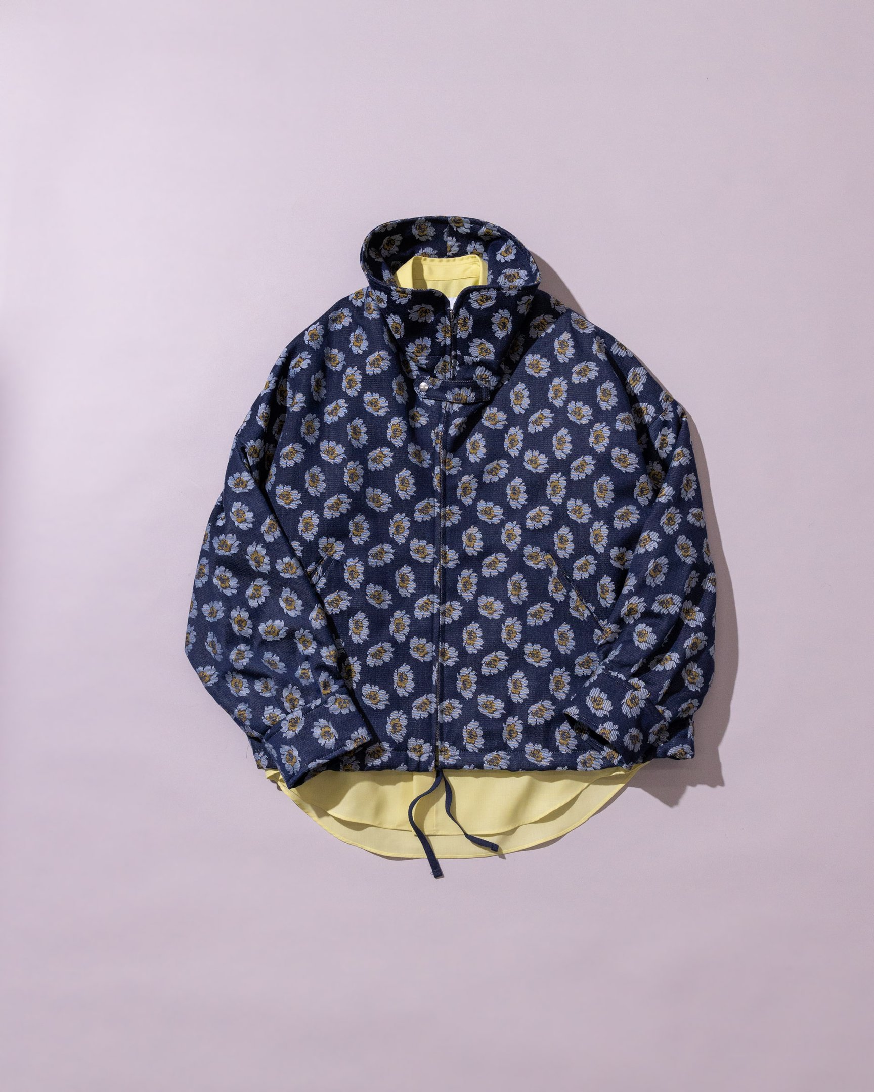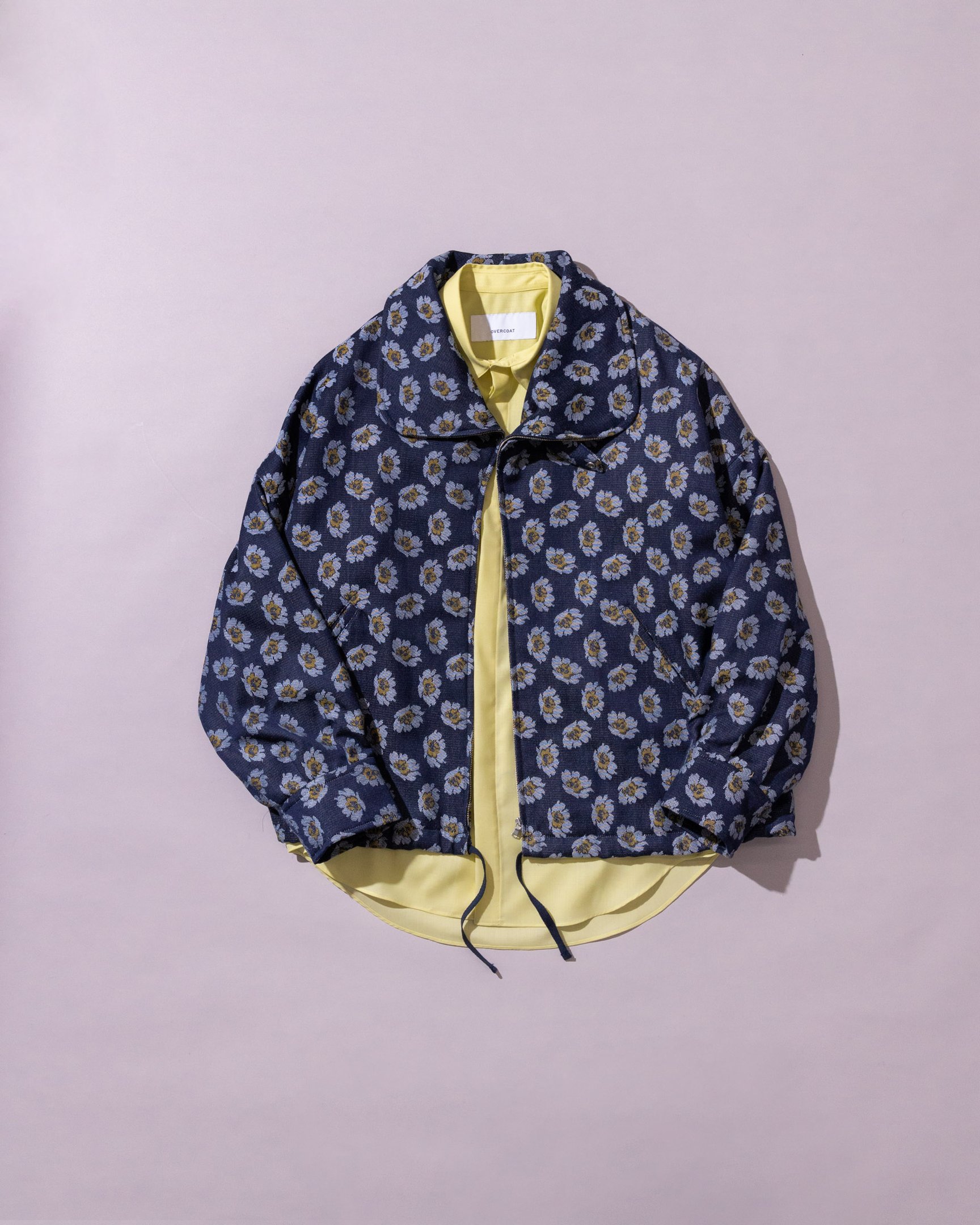 「ミオズモーキー(MIOSMOKEY)」の花柄のジップアップブルゾンは、シルエットを変えられる首元がデザインのアクセントに。身幅が大きめに作られており、ゆとりのあるサイズ感なので性別や体型を選びません。柔らかな素材感のため、インナーを差し込んでも着崩れしにくいのが嬉しいポイント。花柄に使われている色を拾って、イエローのシャツを合わせると洗練された印象になります。こちらもセットアップで着られる同柄のボトムスがあるので、気になる方は是非チェックを!