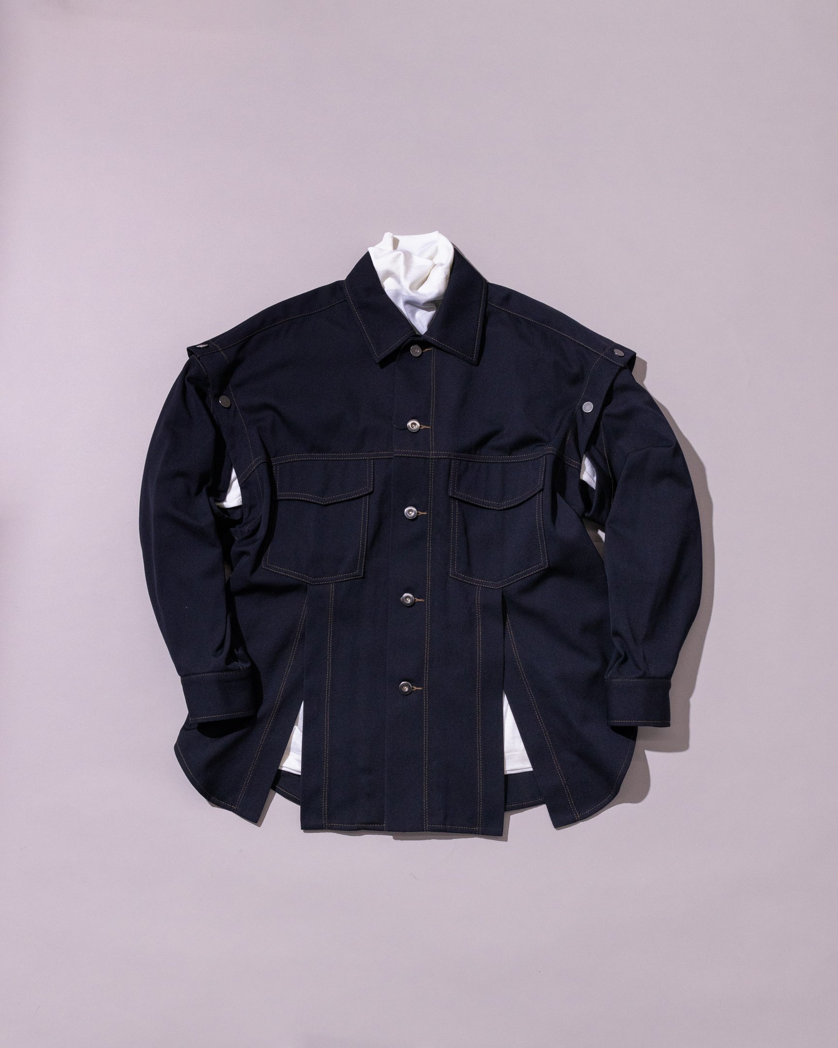 「ウジョー(UJOH)」のGジャン型ブルゾンは袖が取り外し可能となっているため、デニムベストも欲しいという欲張りな方に是非手に取って欲しい1着。袖のボタンは一部だけ開けて腕を出すスタイルなども可能です。前身頃にはスリットも入っているので、コントラストのあるホワイトのインナーと合わせて、デザイン性を活かした着こなしをしてみては?アレンジの仕方でガラッと表情の変わるユニークな1着です。