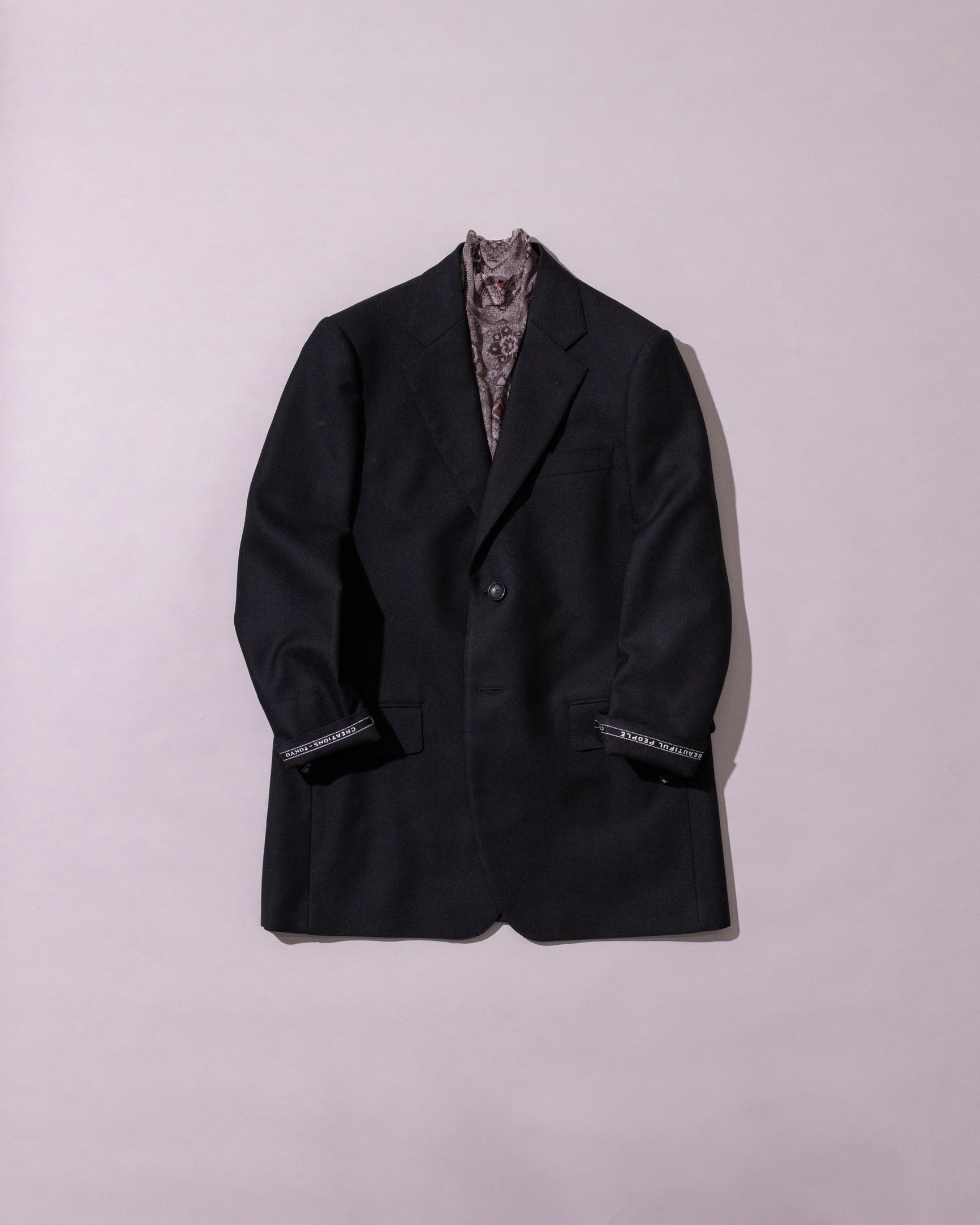 「ビューティフルピープル(beautiful people)」からは、ブラックのテーラードジャケットをチョイス。クラシカルな雰囲気ですが、ゆとりのあるオーバサイズシルエット、袖口をロールアップすると見えるロゴなど、堅い印象を和らげてくれるディテールが散りばめられています。流行りのセカンドスキントップスを忍ばせて、首元や袖口からインナーを覗かせてこなれ感を出してみては。