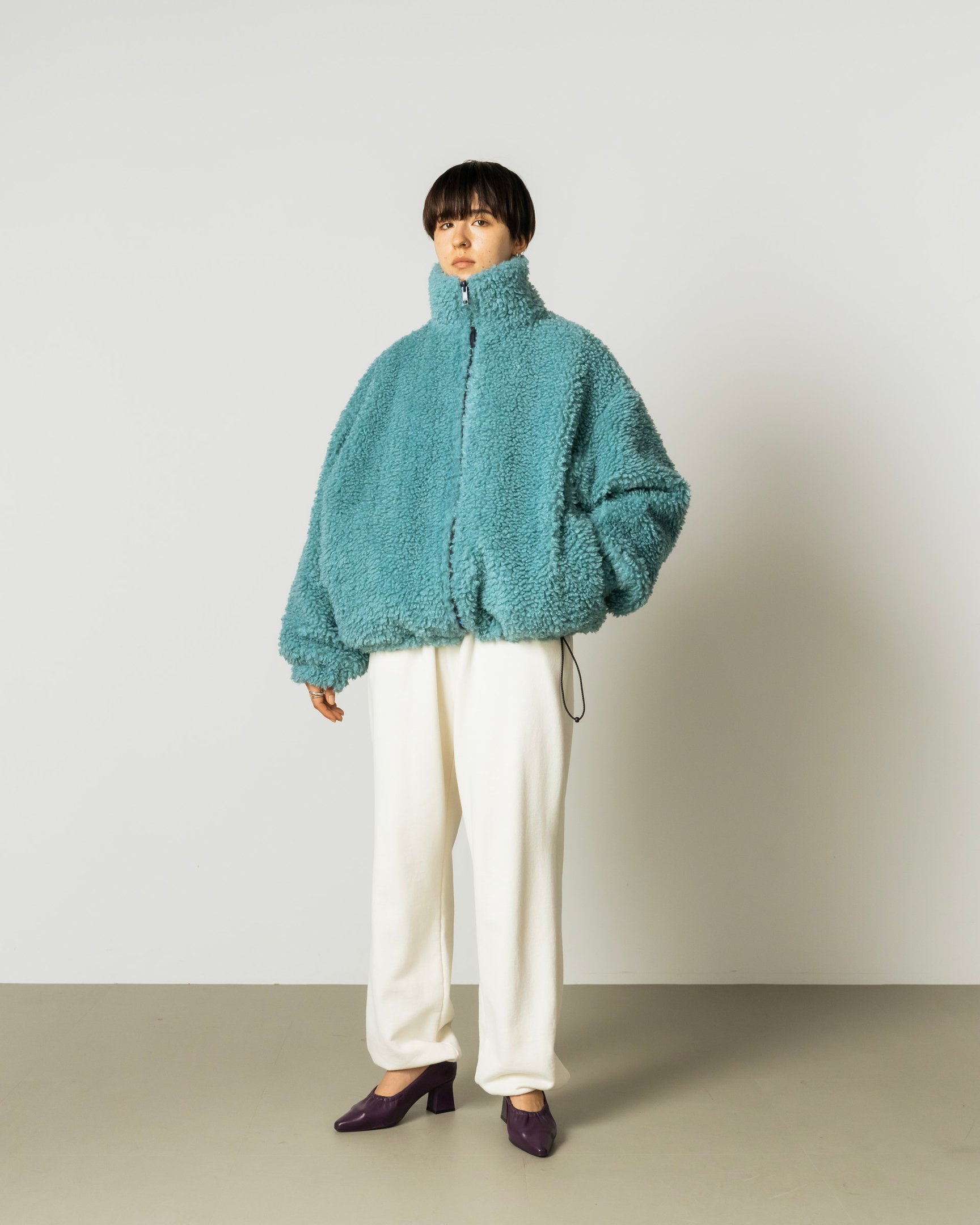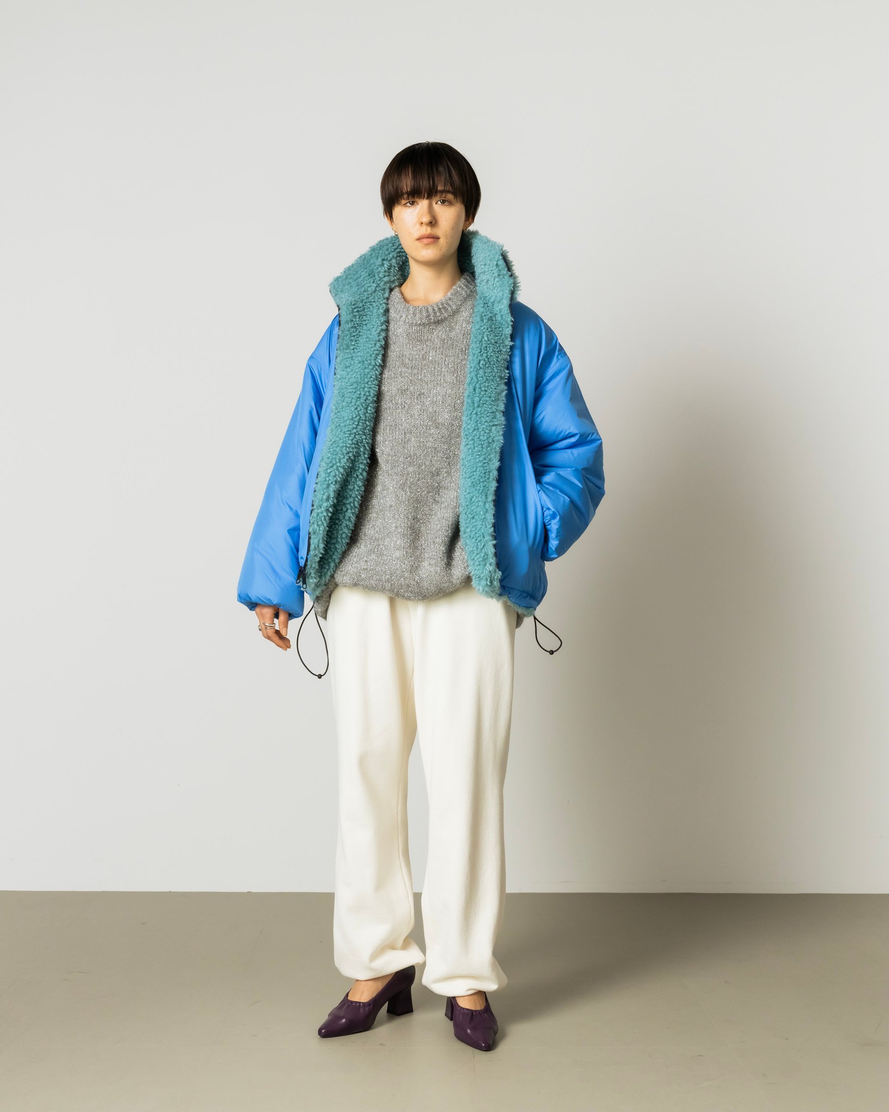 鮮やかなブルーが目を惹くボアブルゾンは「アンスクリア(INSCRIRE)」から。リバーシブル仕様になっており、裏返しで着るとちょこっと出たボアが可愛らしい印象になります。襟は立てても折り返しても着用でき、裾のドローコードでシルエットを変えれるののが良いですね。同系色のパンツを合わせてプレイフルなスタイリングもよし、ホワイトのパンツと合わせてブルゾンを主役にしたスタイリングも良しと、実は万能なアイテムです。