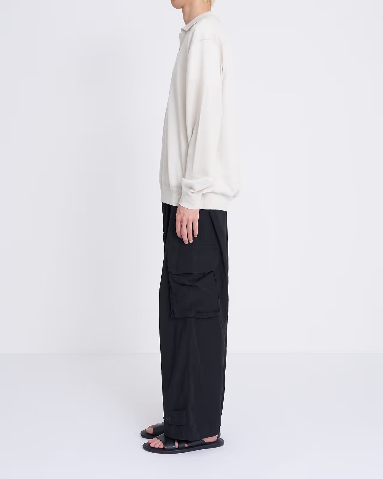 肌離れよく着こなせる程よいシャリ感と、カシミヤ由来の柔らかさを兼ね備えたブランドオリジナルの素材を用いてニットポロを仕立てた「エイトン(ATON)」。ルーズな印象を与えない強めのリブや程よくカジュアルダウンしてくれるスキッパーの襟元など随所にこだわりを感じさせるディテールを盛り込んだブランドらしい一着。ミニマルな佇まいながらスタイリングでさりげない存在感を発揮してくれるアイテムです。
