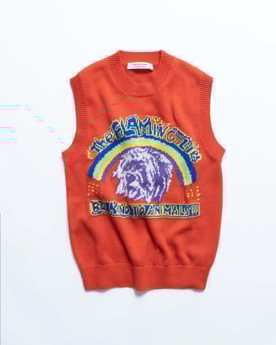 「ビューティフルピープル(beautiful people)」からはアメリカンオルタナロックのレジェンドバンド「THE FLAMING LIPS」とコラボレーションしたニットベストをチョイス。なんとも言えない犬の表情がキュートです。シンプルな白Yシャツや太めのワイドチノパンツと合わせて、胸元の柄を主役にしたこなれ感あふれるプレッピースタイルを楽しんでみてはいかがでしょうか?しなやかで柔らかな肌触りなので、夏場はタンクトップやキャミソールの上に着ても◎。