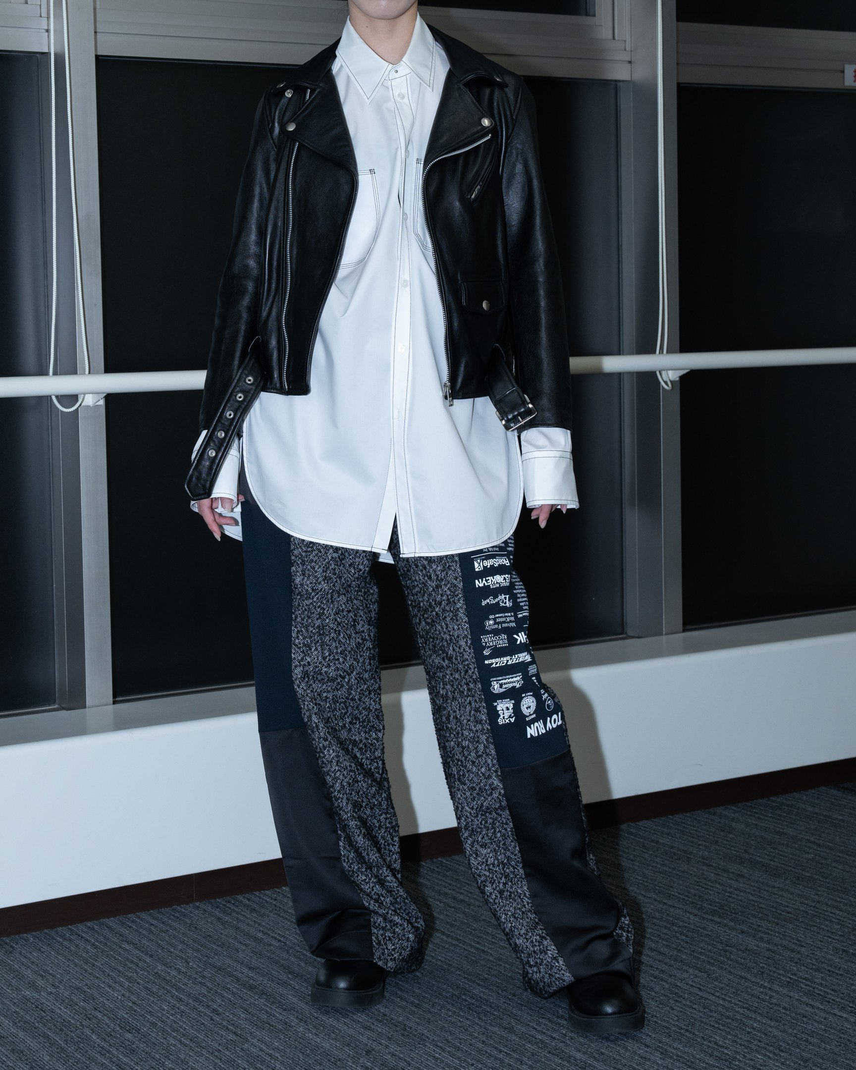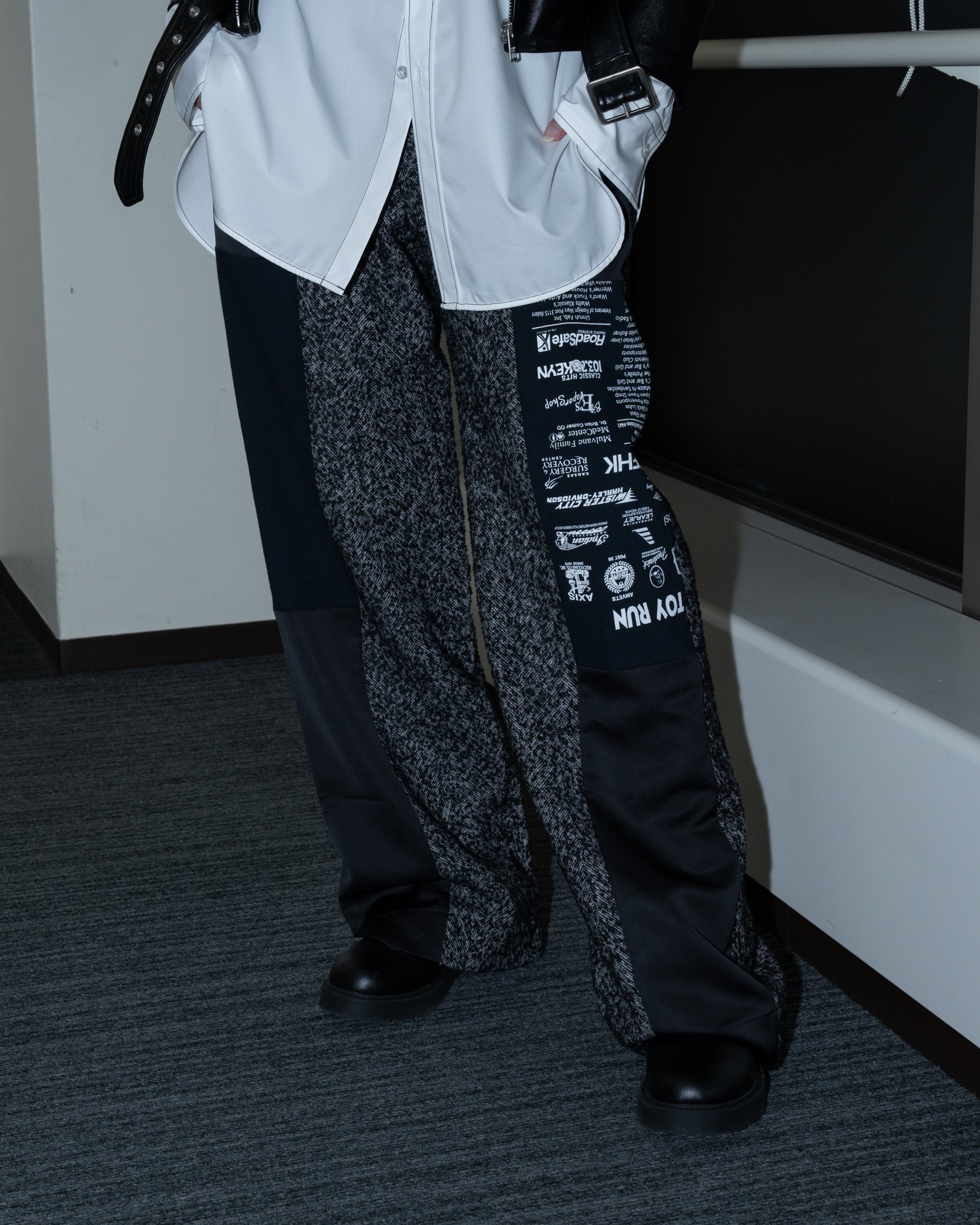 存在感を放つドッキングデザイン、「スリュー」のリサイクルウールパンツ