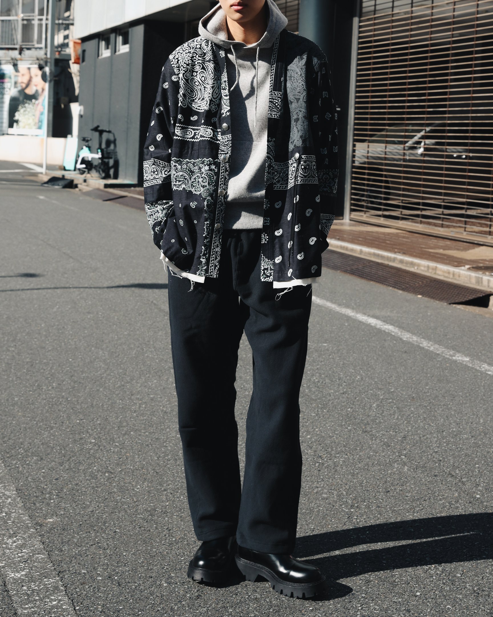 「裏起毛のリバーシブルアイテムをオリジナル生地で絶対作りたい!それも裏と表で全く違う表情になるやつがいい!」というデザイナーの思いから誕生した「コトハヨコザワ(kotohayokozawa)」のスウェットパンツは、その日の気分やスタイリングの雰囲気に合わせてリバーシブルで楽しめる仕様を採用。シンプルなグレーにブラウンのシームが映える面と、全面に色をあしらったアイコニックな面はどちらも”両A面”の仕上がり。まっすぐ落ちるワイドシルエットはブーツなどボリュームのあるシューズと相性抜群で、使い勝手の良さからヘビロテしてしまうこと間違いなしのアイテムです。