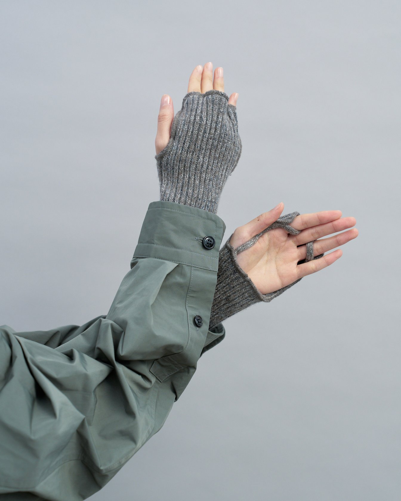 ボンバージャケットやブルゾンなど、ミリタリーテイストなアウターやコーディネートに合わせたい「アトリエべトン(ATELIER BÉTON)」のアーミーグローブ。昨年も人気を博したアイテムで、希少な編み機を使ったニットの編地と、接ぎ合わせのないシームレスな着用感が魅力的な、指に引っ掛けて身に着けるタイプのアームカバーです。