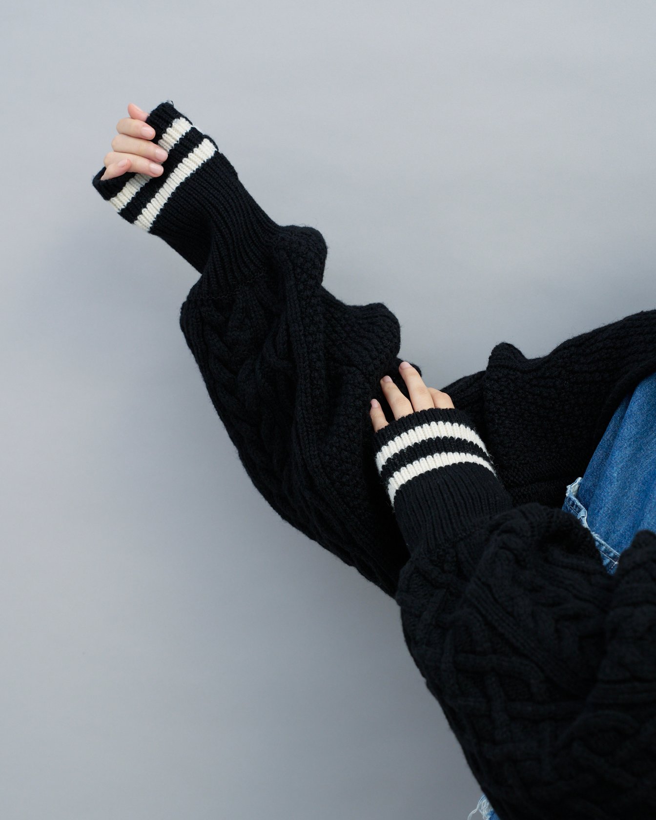 AI生成のグラフィックセーターと共にリリースした「ハトラ(HATRA)」のアームカバーは、ルックブックにも多く登場している23AWのキーアイテム。肘までかかる長めの筒はノースリーブデザインのウェアとも好相性で、エレガントなベストと合わせるだけでおしゃれな秋顔に。艶のあるワンウォッシュデニムやニットトップとの合わせもおすすめです。