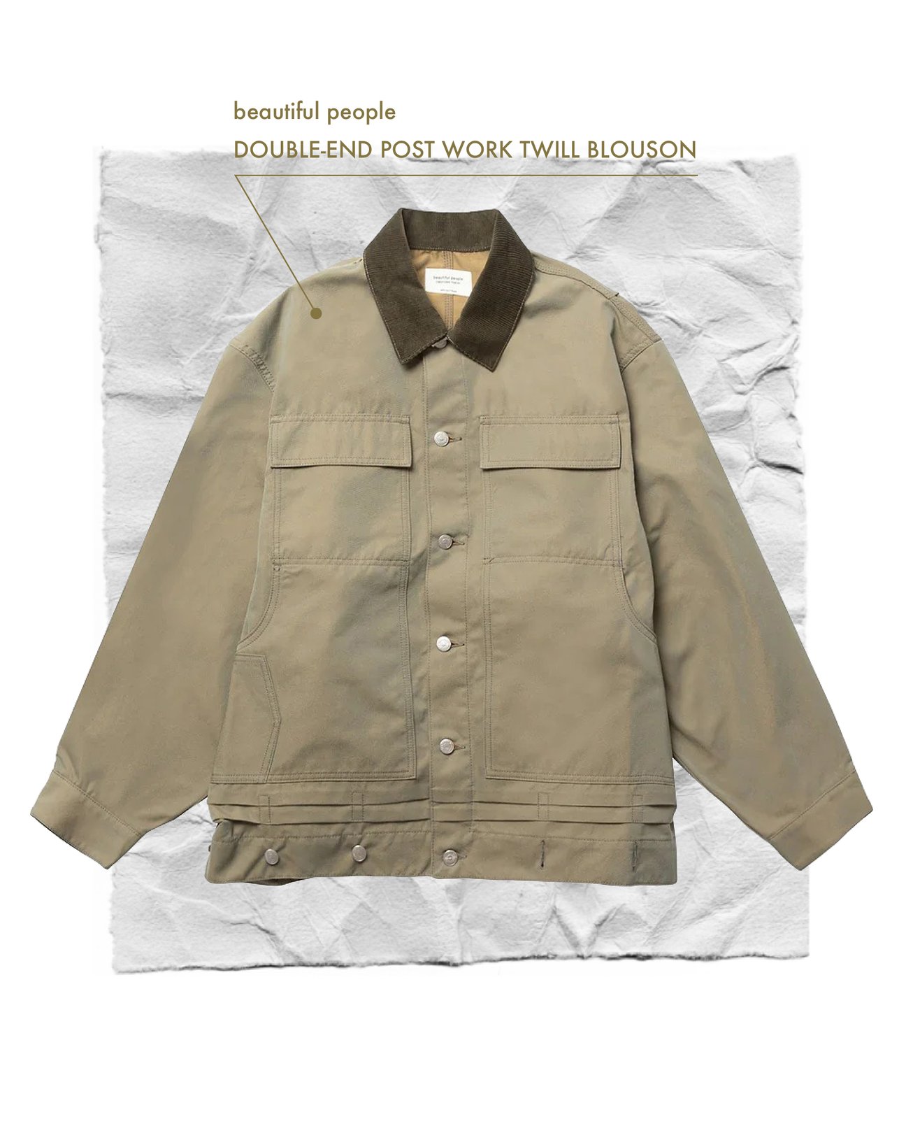 上下2wayで着られる「ビューティフルピープル(beautiful people)」のダブルエンドシリーズから、アイコニックなワークブルゾンをチョイス。ミリタリーな気分にマッチするコーデュロイの襟やポケット、反転した後ろ姿のシルエットなど、こだわりのディテールはどこから見ても抜かりなし。ファッションの面白さを再確認できる主役級のブルゾンです。