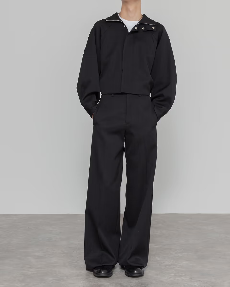 最後にご紹介するのは、しなやかにドローコードが揺れる「ウジョー(UJOH)」のフード付きブルゾン。デイリーからモードまで広く対応する万能なアウターは、サイドボタンの開閉でシーンに合わせたフォルムの変化を楽しめます。立体的なフードの形と三重織のハリのある生地が仕立ての良さを裏付ける、オンオフ兼用で活躍するジップブルゾンです。