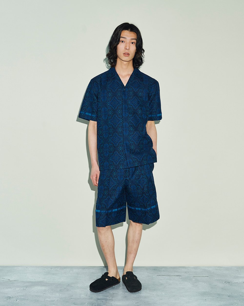 ヨウジヤマモト出身のパタンナー小林と、サポートサーフェスで企画・生産・デザインを経験した安倍のデザイナーデュオによる「イレニサ(IRENISA)」からは、オリジナルのジャカード生地を使った品のあるショーツをご紹介。タックが入ったややワイドなシルエットが生地感と相まって、エレガントな雰囲気を醸し出し、大人のためのショーツに仕上がっています。同じデザインのシャツと合わせれば夏らしい爽やかなセットアップスタイルが完成します。