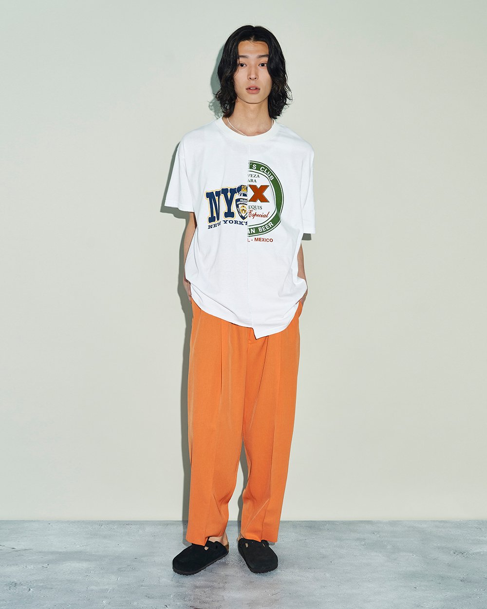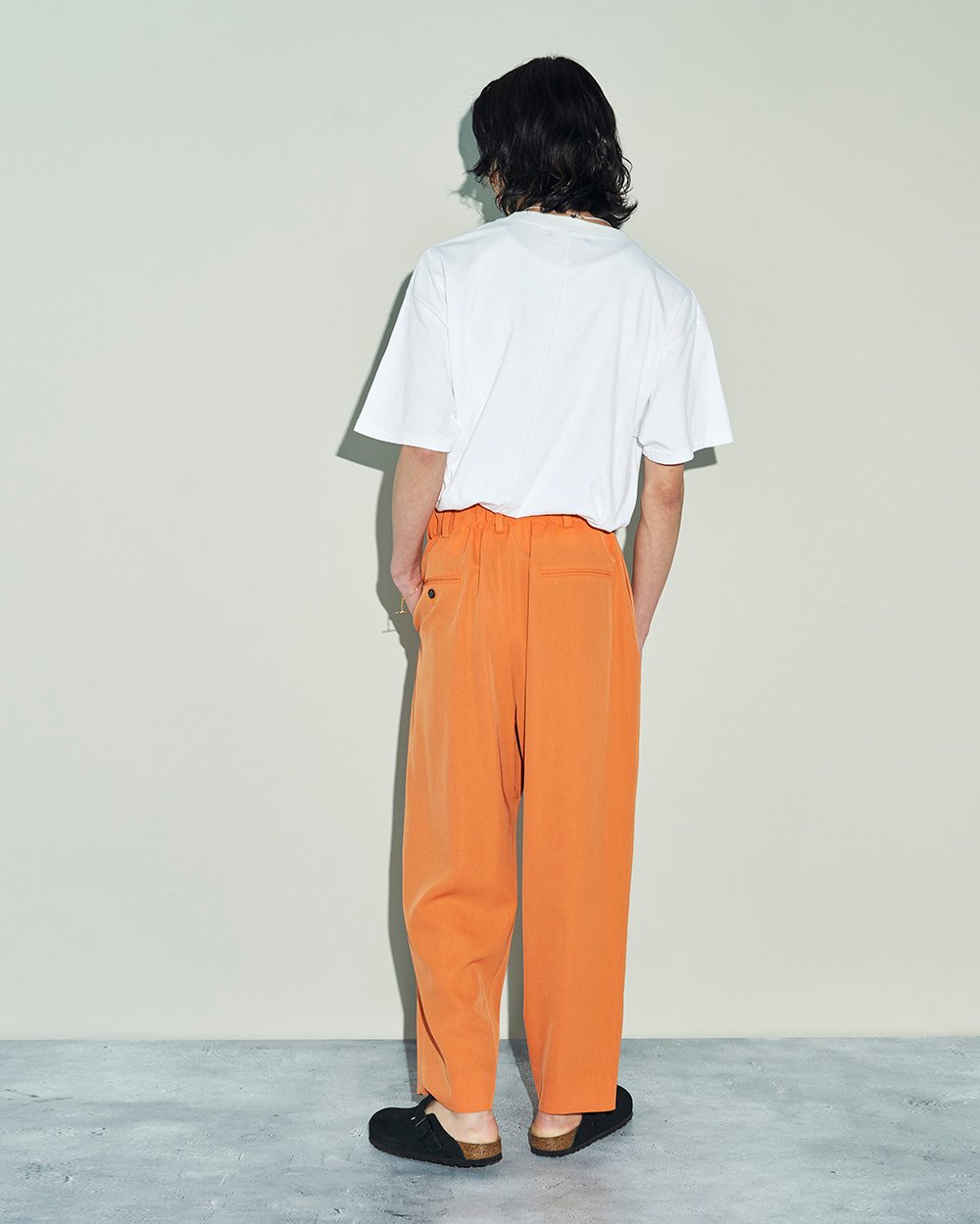 「ウジョー(UJOH)」のテーパードパンツは、穿くと分かる美しいシルエットが魅力的な1本。膝下から裾にかけてテーパードを効かせることで、足のラインをすっきりと綺麗に見せてくれます。シルエットの美しさとは裏腹に、バックウエストはゴム仕様になっているので、穿き心地の良さもポイント。白Tを合わせてヴィヴィッドなオレンジを主役に楽しんでみては。