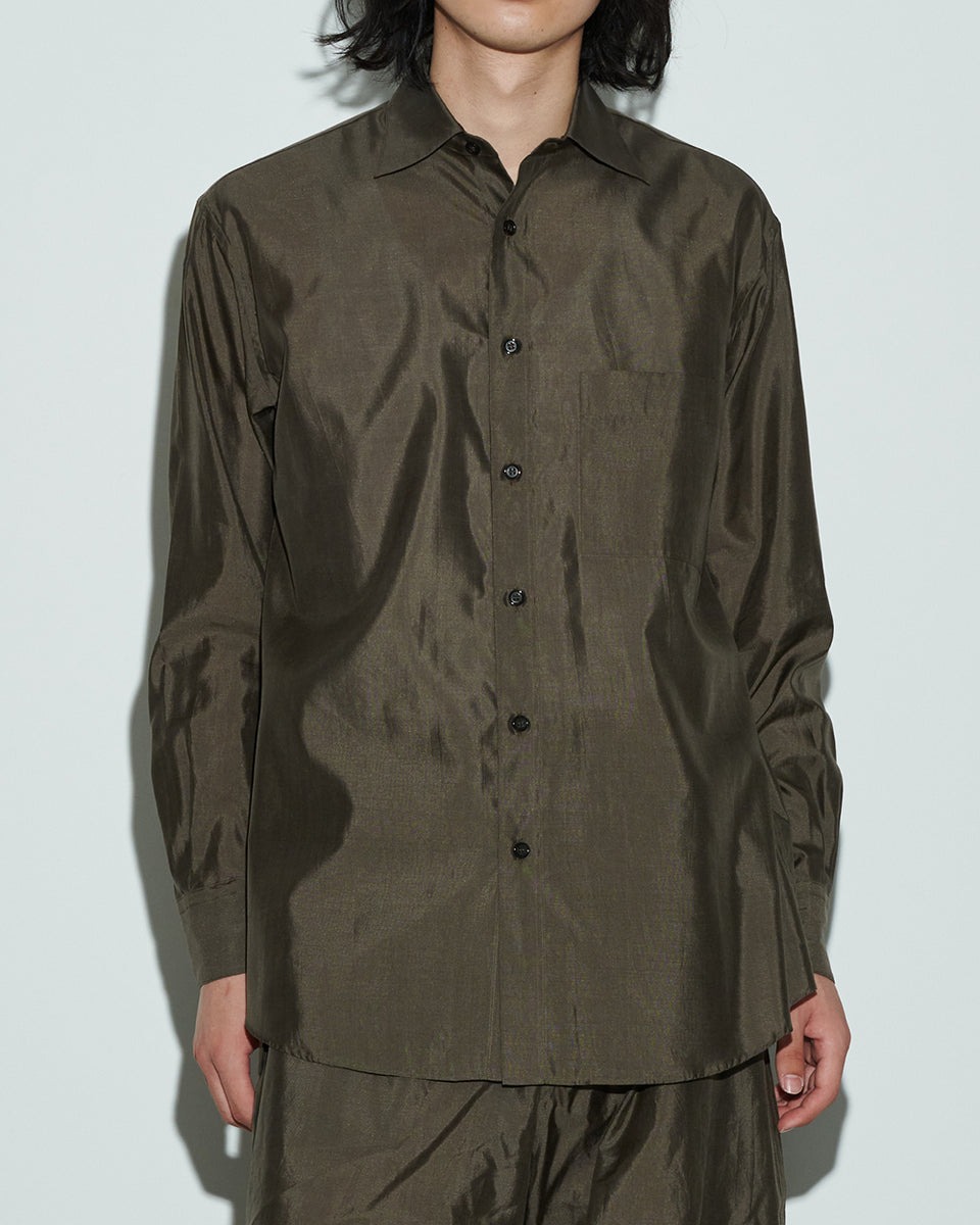 高級素材のシルクを贅沢に使用した「アンスクリア(INSCRIRE)」のセットアップ。天然の機能素材とも言われるシルクは、コットン以上に吸水性・放湿性を備えており、かつ通気性も高いので夏の装いを快適にしてくれます。生地が薄いシャツとパンツのセットアップは得てしてパジャマのような部屋着感が出てしまいがちですが、シャツは身幅や着丈をオーバーサイズにすることでモダンさをプラスし、パンツはフラップポケットや膝にダーツを入れることで程よいミリタリー要素を加え、大人なカジュアルなアイテムに仕上げています。足元はレザーのサンダルなどで引き締めるのが◎。