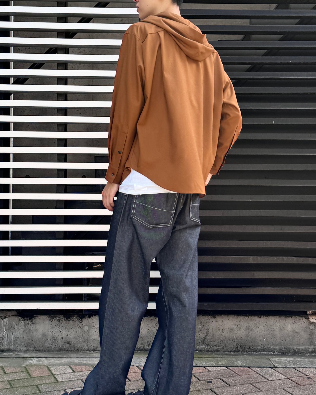 端正なウールシャツをベースに、スポーティなフードをドッキング。相反する二つの要素を掛け合わせ構成された一着は「オーバーコート(OVERCOAT)」から。象徴的なフードのデザインはボタンを開ければセーラーカラーのように、あご下のボタンまで留めれば変形のハイネックのように見せることでき、着こなしの幅を広げてくれる優れもの。“普通”とは違うシャツを探している人におすすめです。