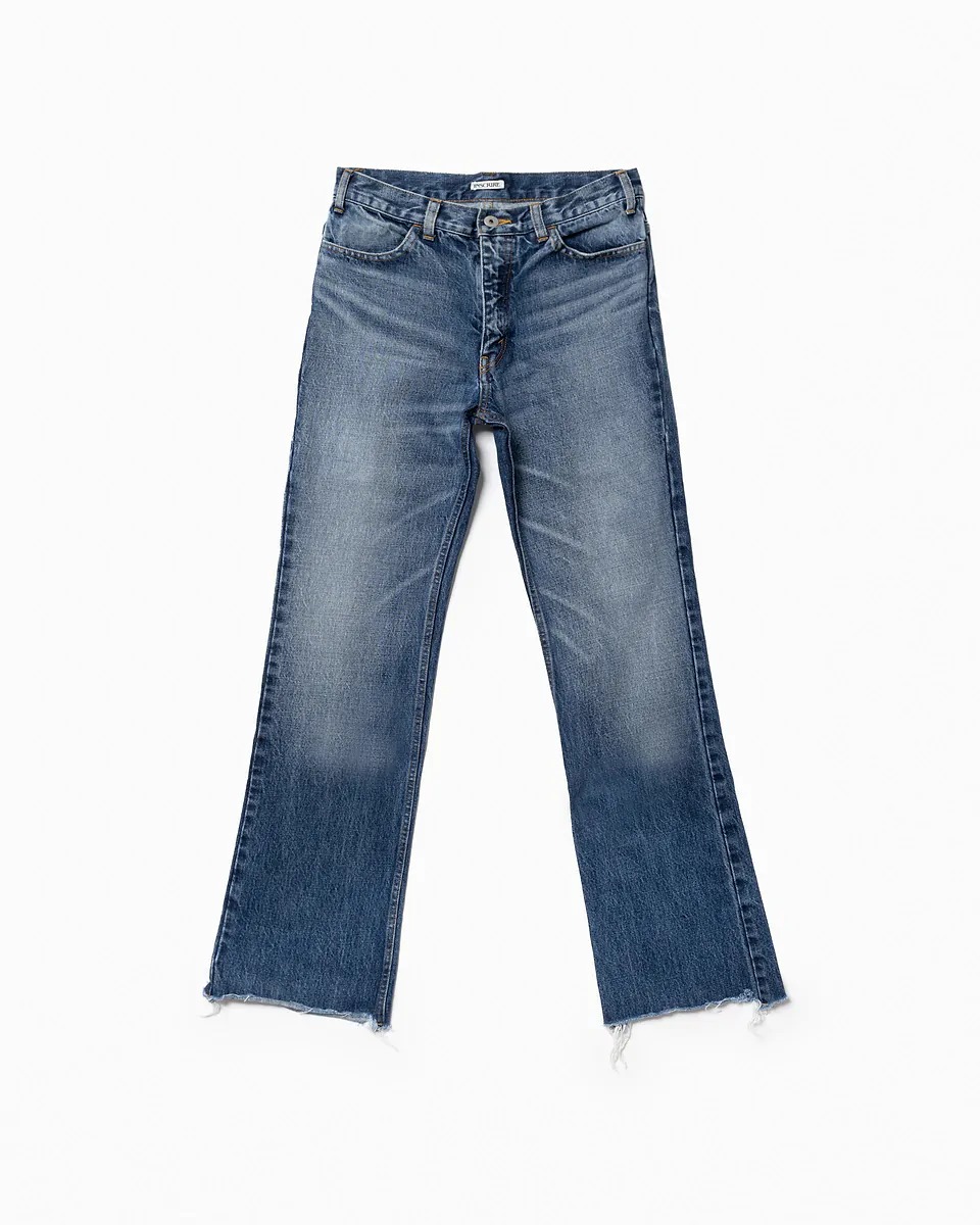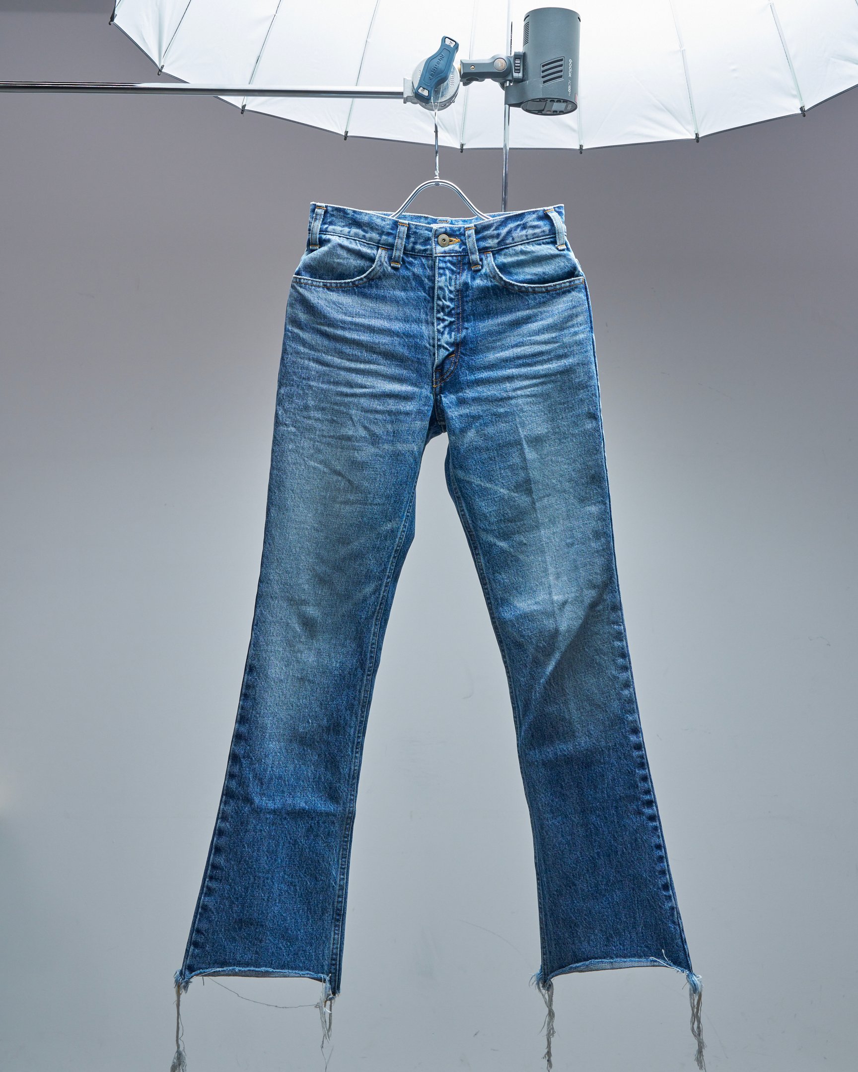 ヴィンテージデニムから素材や加工のインスピレーションを得たフレアデニムは、何度もサンプルの試作を重ねたこだわりの定番品。「ついつい履いてしまう愛着の湧く一本」を目指し作成した、足をすらっと長く見せてくれる美脚シルエットのジーンズです。