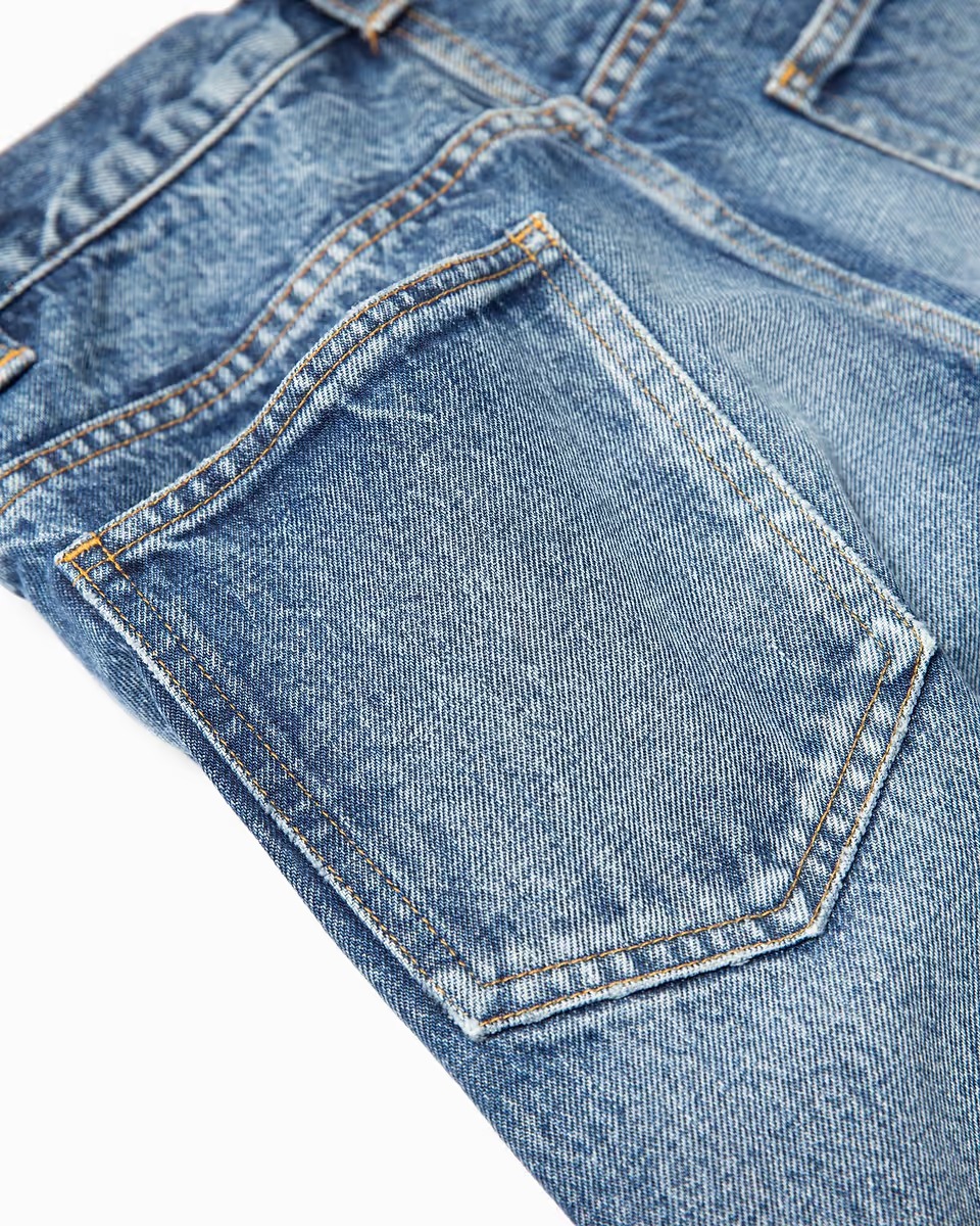 ヴィンテージウェアへのリスペクトを感じるワークジーンズジャケットは、懐中時計用のボタンホールや機能的なポケット、セルビッチディテールなどブランドらしいこだわりを散りばめた一着。サステナブルな生産背景を持つカイハラ社製デニムを採用していることも、定番として愛され続ける理由の一つです。