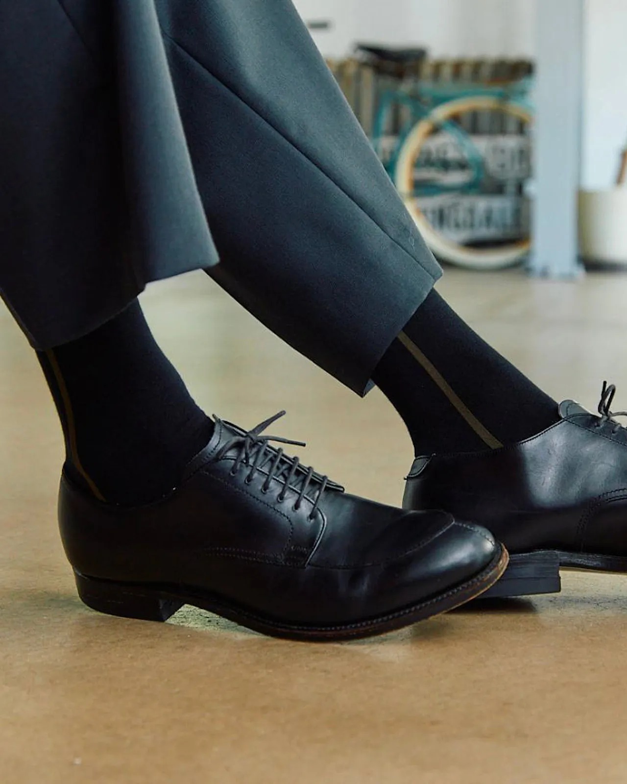 贈り物の鉄板として根強い人気を誇る「シックストックス(CHICSTOCKS)」のギフトセット。仕事用として選ぶならスーツや革靴にもマッチするシックなカラーリングをベースにしたセットがおすすめです。シリーズを象徴するラインのデザインはそのままに、ブラックでまとめあげることで落ち着いた印象に仕上げたソックスは、足元にさりげなくアクセントを加え、センスの良さを感じさせます。