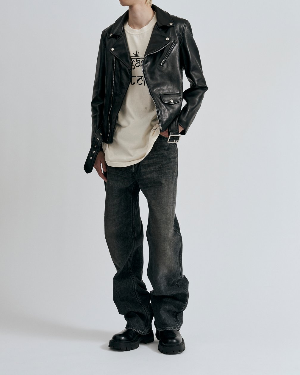 「ビューティフルピープル(beautiful people)」のライダースジャケットは、ブランドのシグネチャーとして継続的な人気を誇る一着。ハリとツヤを併せ持つヴィンテージレザーを使用し、着込むほどに自分の身体に馴染んでいく経年変化を味わえます。ブラックのレザーに映えるシルバーのジップや鋲、肩周りの動きを損なわないアクションプリーツ、立体的な前振りの腕のパターンなど着る人をモチベートしてくれる細部のディテールが詰め込まれた一着は、タイムレスに重宝し、ワードローブの定番になること間違いなし。今の季節ならTシャツにデニムパンツを合わせてカジュアルに着こなしてみて。