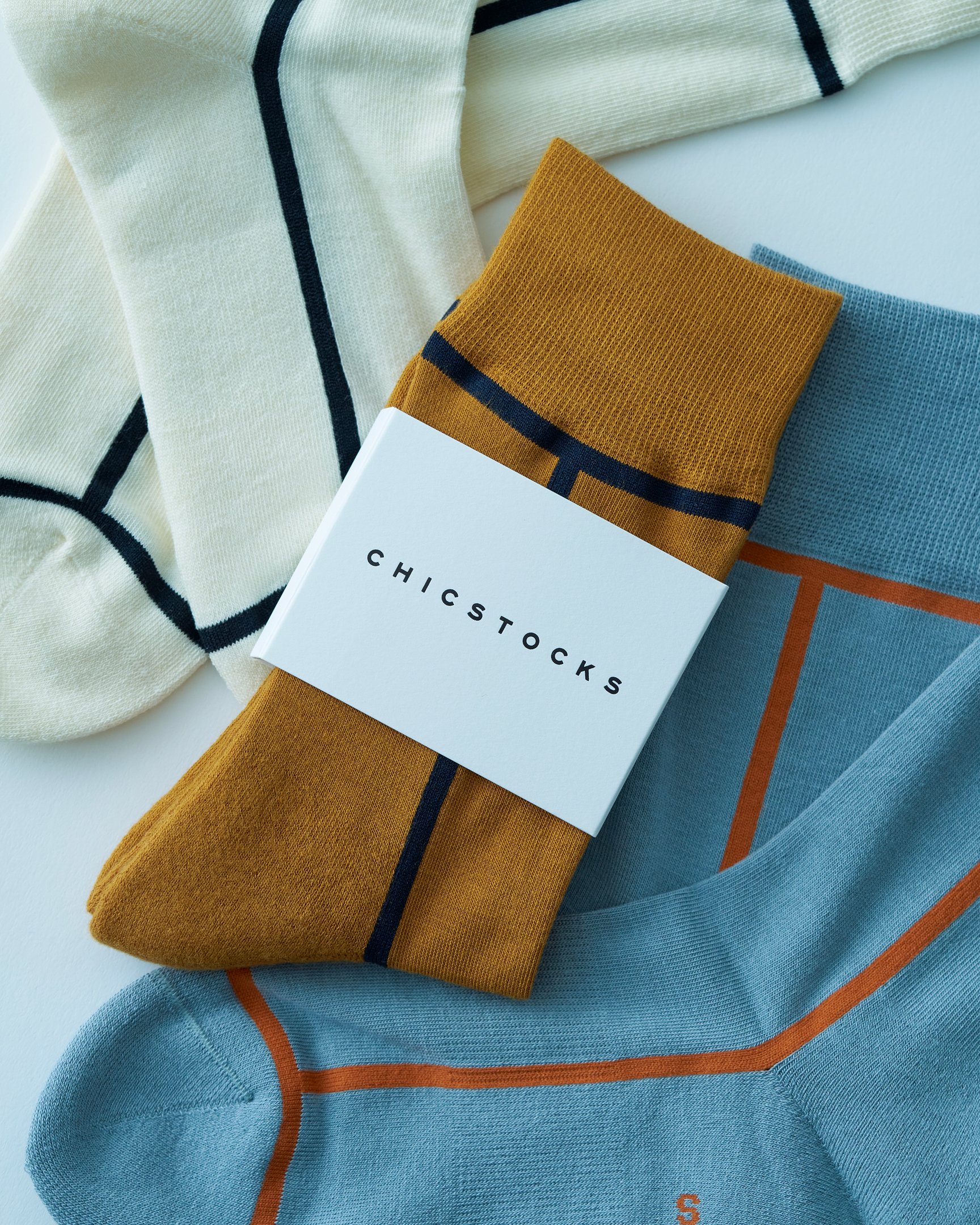 こなれた配色とシンプルなデザイン、快適な履き心地の3拍子が揃ったラインソックス。合わせるボトムスやシューズを選ばず、フォーマルからカジュアルまで幅広いスタイルで重宝する。(シックストックス / ¥1,980)