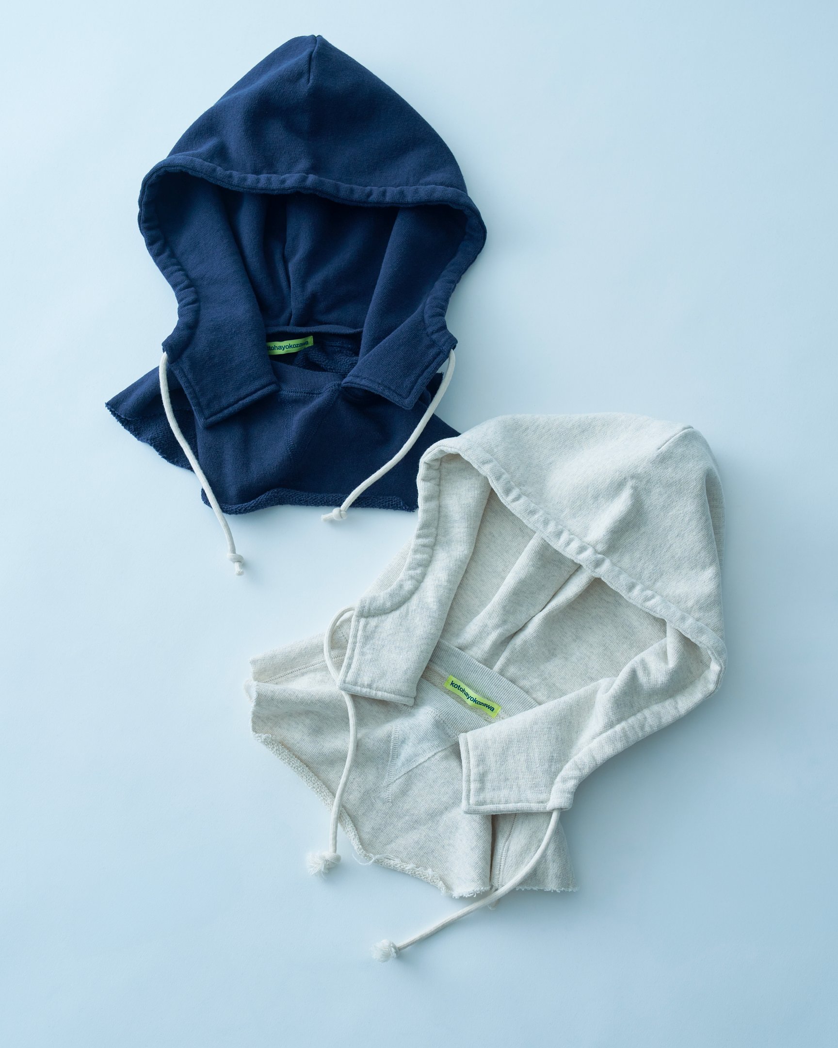 今の季節はバラクラバ感覚で、春先にはスタイリングのポイントとして重宝する付け襟タイプのフーディ。Tシャツやシャツに重ねれば着膨れすることなく、スマートにレイヤードスタイルを楽しめる。(コトハヨコザワ / ¥14,630)