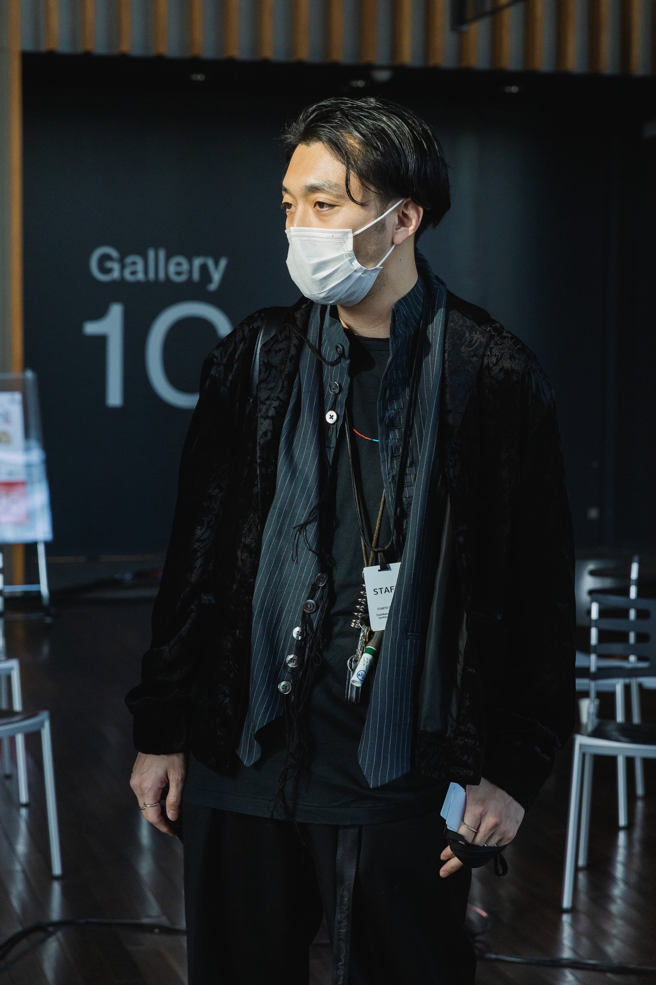 一般社団法人日本ファッション・ウィーク推進機構(JFWO)のディレクター 今城薫氏も会場入り。今城氏はオーガナイザーとしてショーに参画します。今城氏は「この3月のファッションウィークは特に濃い内容のものになっていると思います。その中で一つの目玉企画として、中村聖哉さんのようなグローバルで活躍するスターとご一緒できて光栄に思っています」とフミト ガンリュウのショーについて話しています。