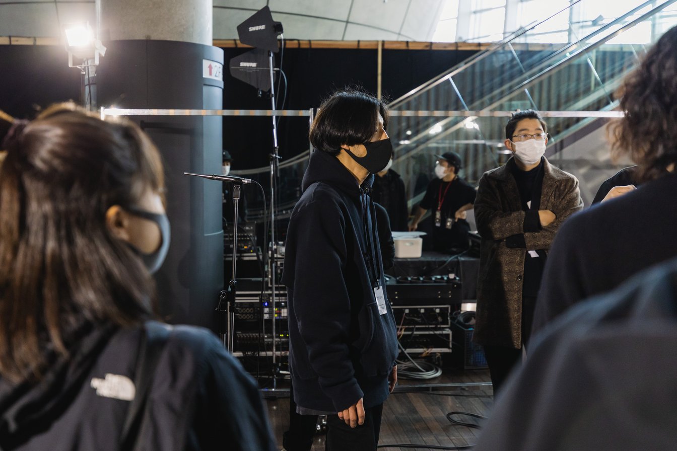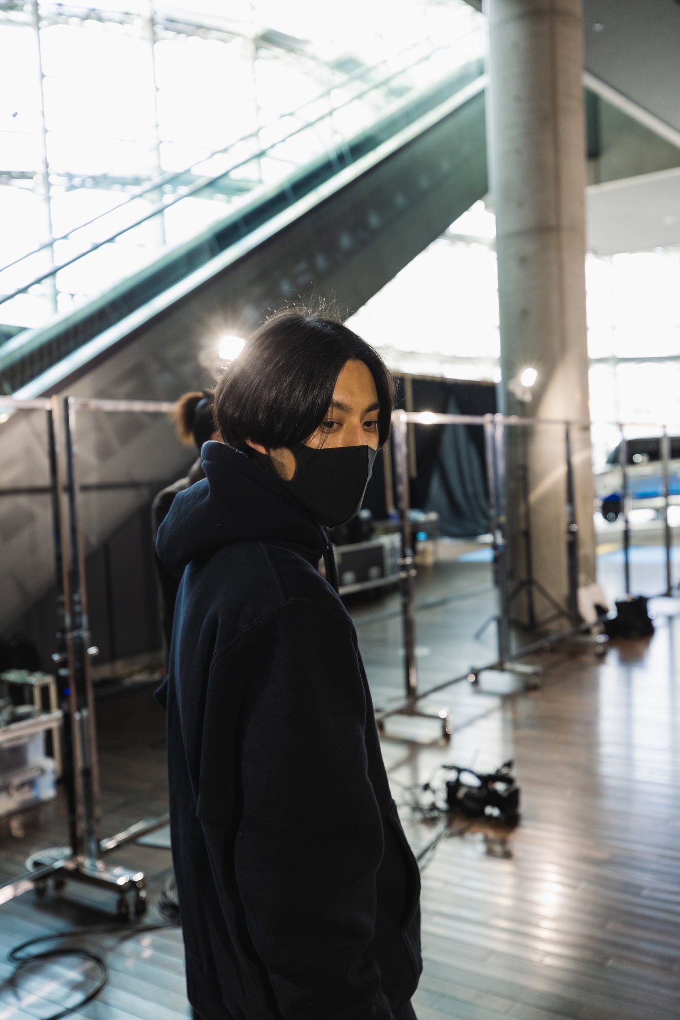 昨夜一度会場入りした後、デザイナー丸龍文人氏も10時に会場入り。「普段ショー前にあまり緊張することはないですが、今回は新しい取り組みが多いので、楽しみでもあり、緊張もしています」とのこと。山縣良和氏とのコラボはもちろん、BiSHの出演などパリコレでのショーとは勝手が違うようです。
