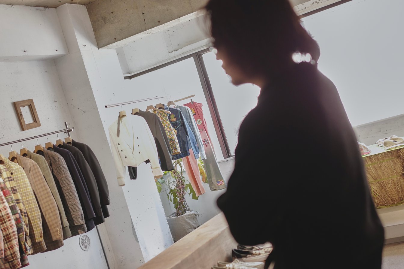 「ただなんとなく古着を扱っている店や、売れるからとりあえずそのアイテムを置いている店はいい古着屋とは言えないと思います」。そう語る背景には、古着を“選ぶ”ことを、表現として捉え、その積み重ねが店の輪郭を形どっていくという考えがある。